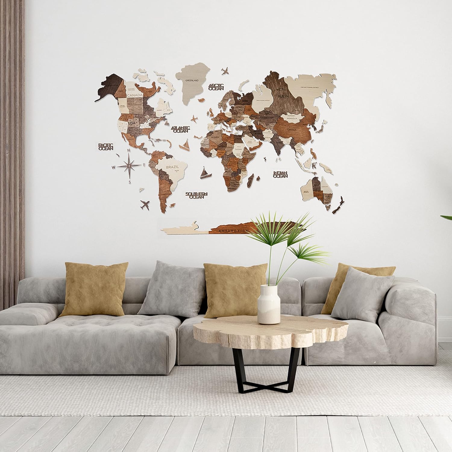 - Premium Quality Construction: This world map wall decor is crafted from superior quality, highly durable birch plywood, available in a selection of 8 colors, 3 sizes and push pins according to your individual needs or preferences.