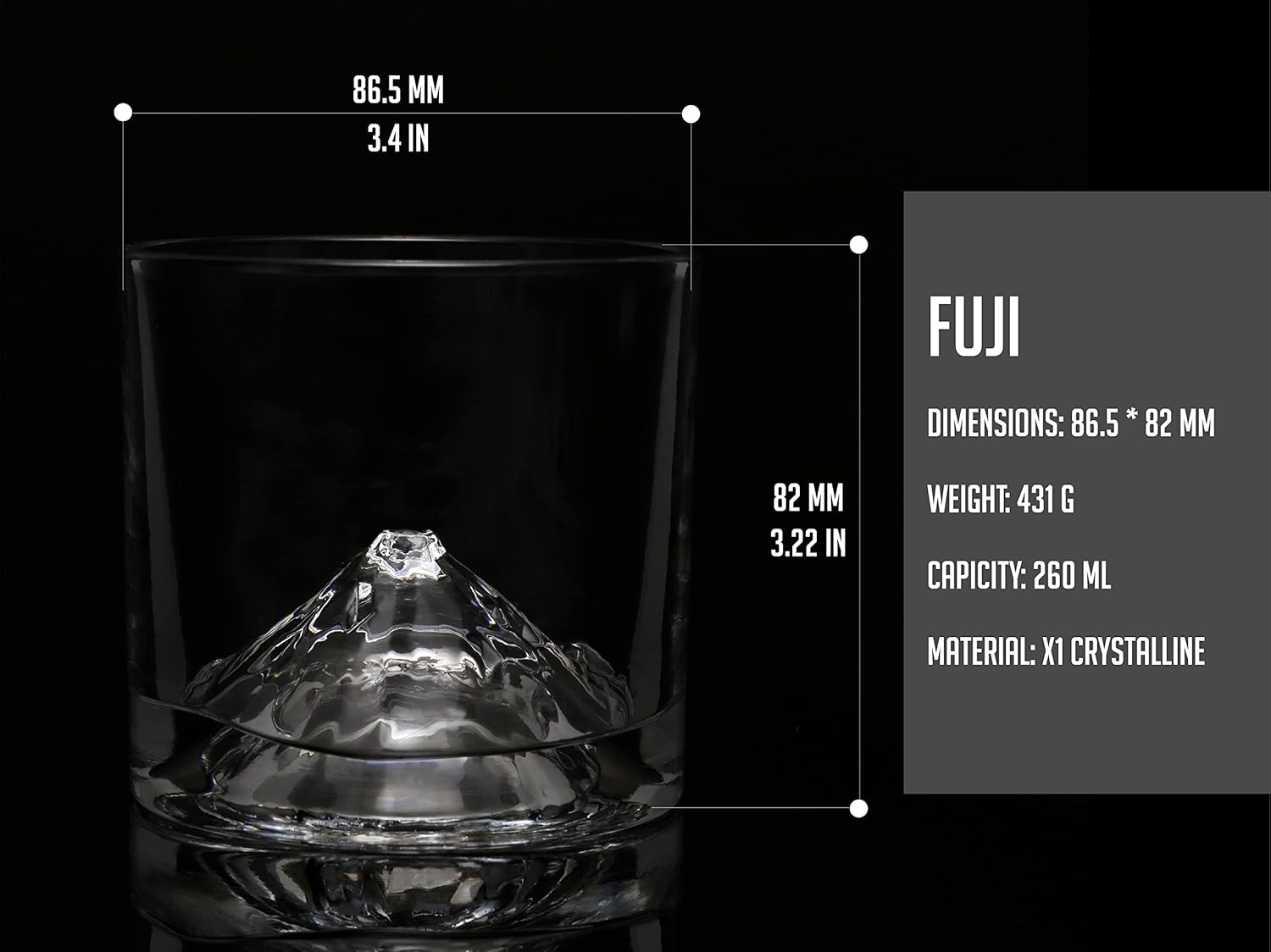 - SCALE REPLICA OF MOUNT FUJI: This crystal whiskey glass replicates the walls of Mt. Fuji. It naturally chills and aerates bourbon, scotch, tequila, vodka, or cocktails, elevating your drinking experience as you swirl the glass.