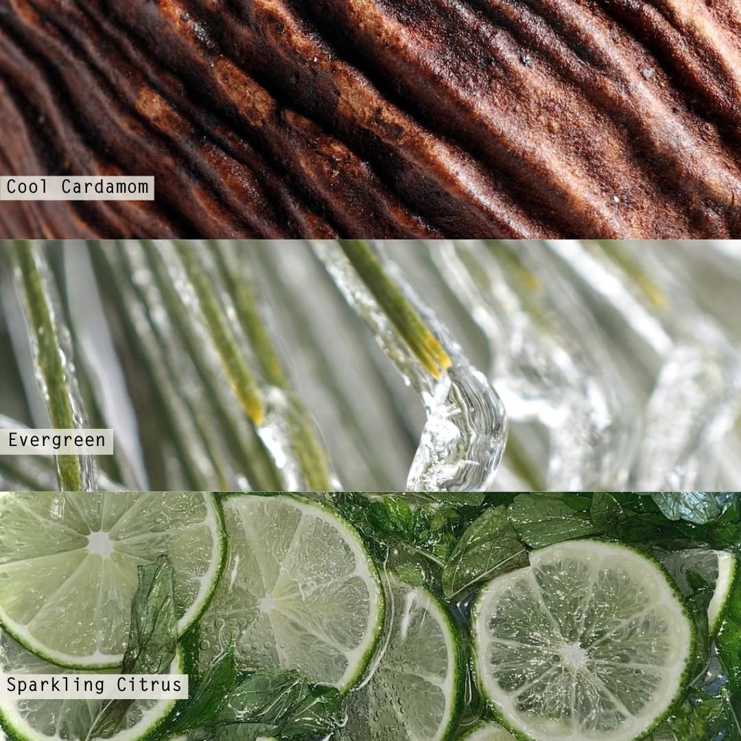 - This scent is grounded in cool cardamom with a heart of evergreen kissed with sparkling citrus