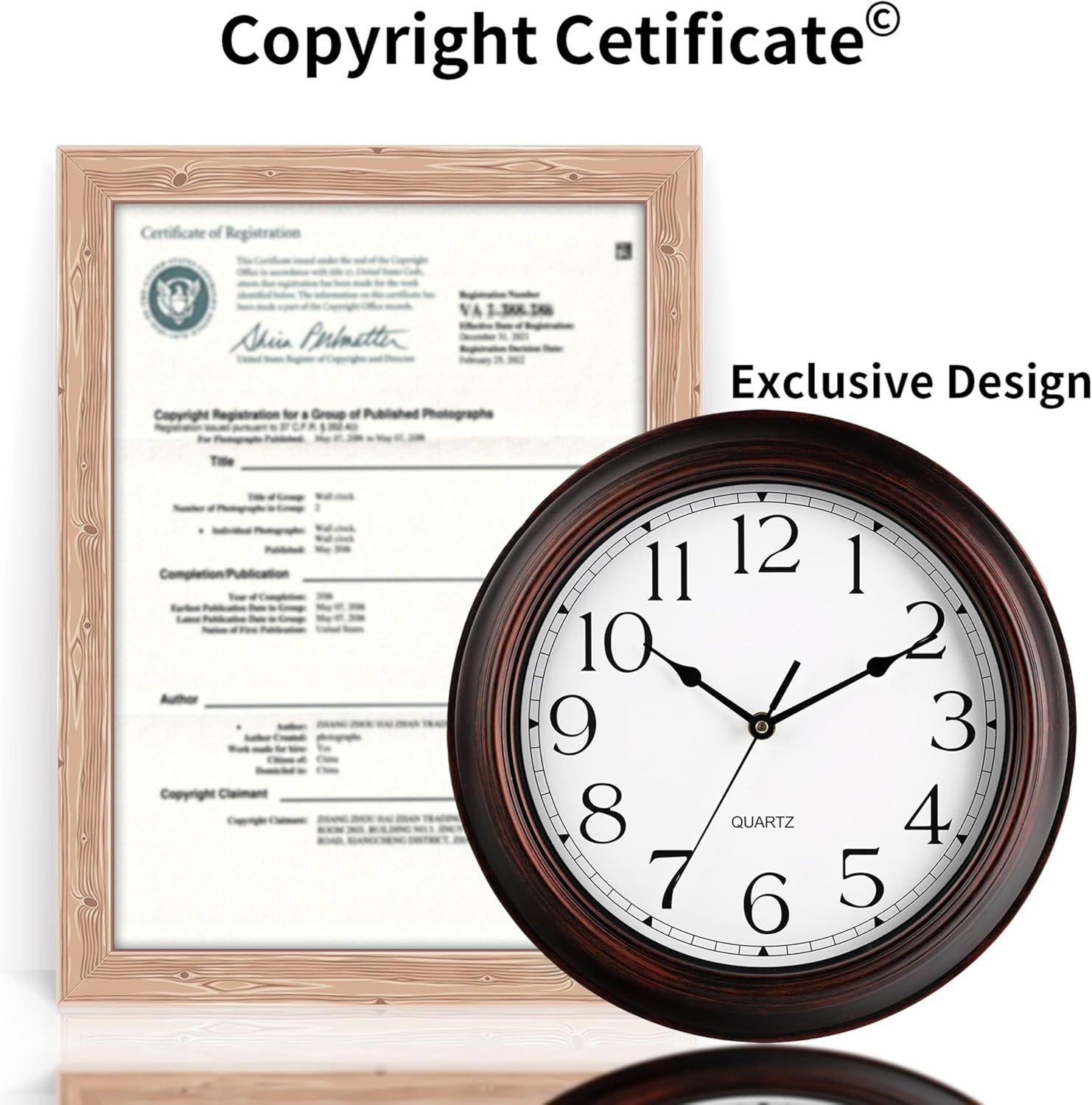 14 Inch Wall Clocks Battery Operated Silent Non-Ticking Wall Clock Vintage Retro Rustic Style Decorative for Living Room Kitchen Farmhouse (Bronze)