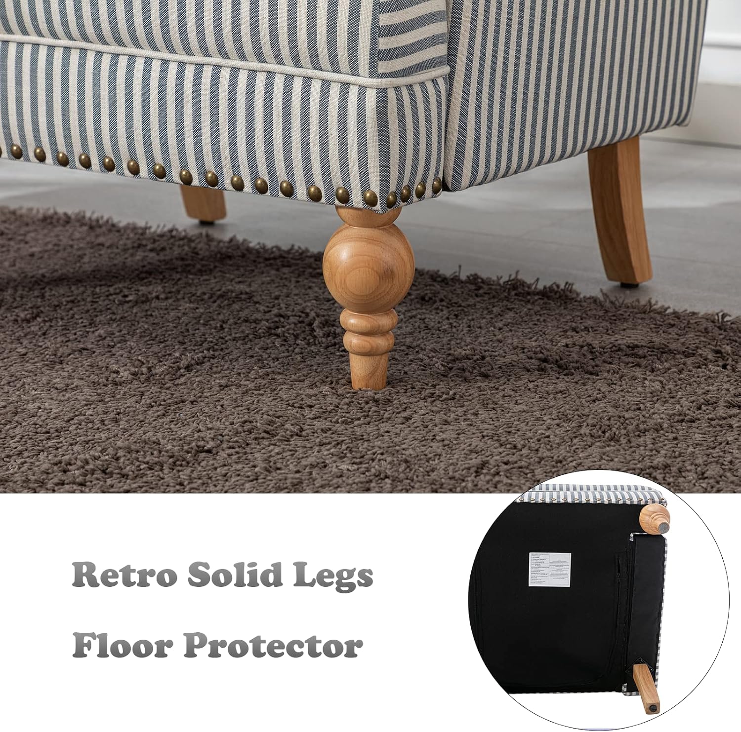 chairus Linen Accent Chair for Living Room Upholstered Mid Century Modern Single Sofa Chair with Solid Wood Legs Comfy Reading Chair Armchair for Bedroom/Office Room/Recption/Lounge, Blue Stripe