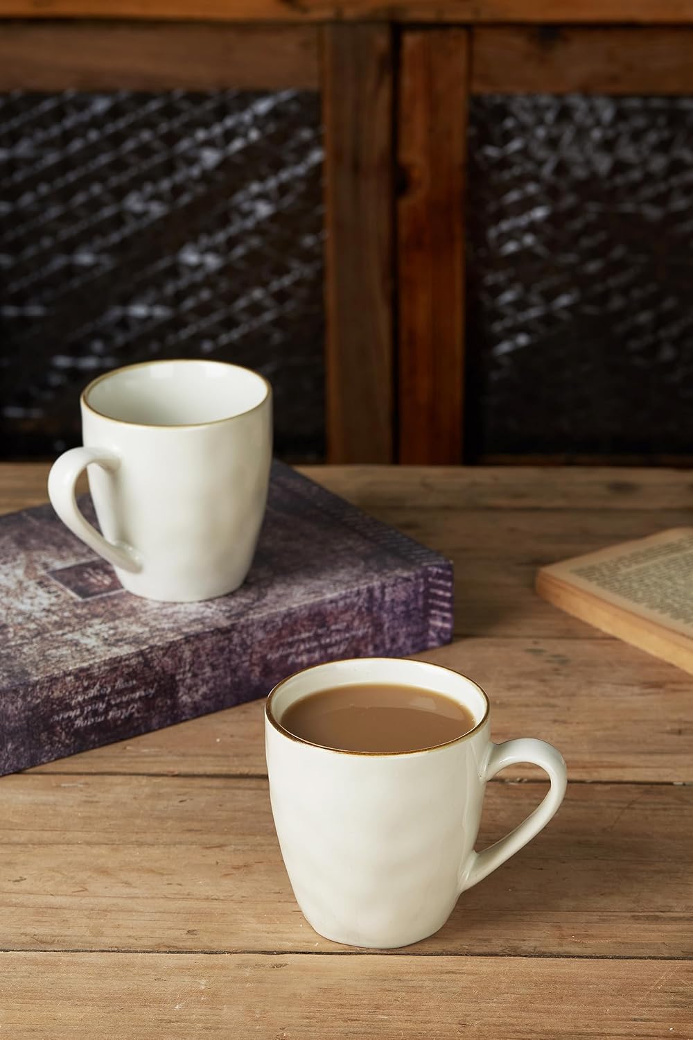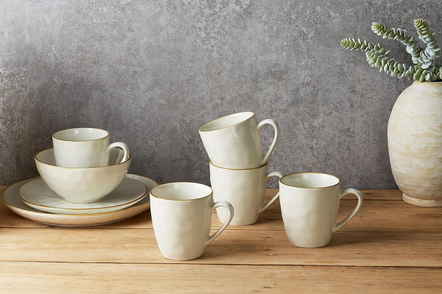 famiware Coffee Mugs Set of 4, Ocean Round 11.5oz Coffee Cup Set with Handle for Cocoa, Milk, Hot Chocolate, Tea or Water, Stoneware Cups for Kitchen, Microwave Dishwasher Safe, Vanilla White