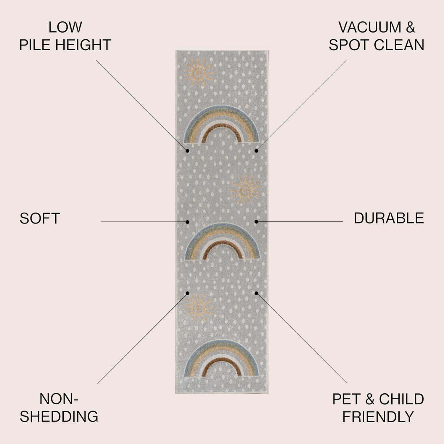JONATHAN Y Machine-Washable Gray/Ivory/Yellow Runner Rug, 2x8, Minha Rainbow Dots, Kids & Novelty, Casual, Classic, Bedroom, Kitchen, Living Room, Easy-Cleaning, Non-Shedding (KDW102A-28)