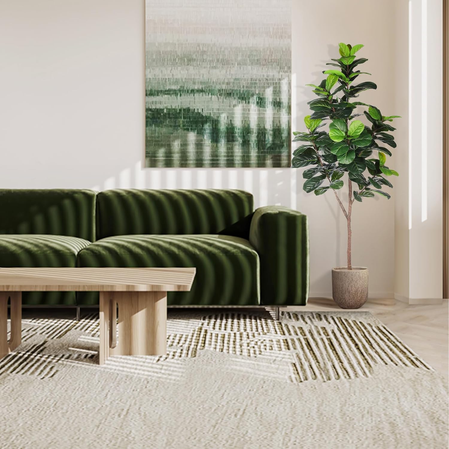 - 【Sturdy and Adjustable】Our artificial plant is equipped with sturdy internal metal wires that you can bend and adjust its branches to achieve its fullness and desired look, so you can truly produce your ideal artificial tree. This fiddle leaf fig tree will retain its height, color, and shape for years without the need for pruning and shaping to ensure that it remains aesthetically pleasing