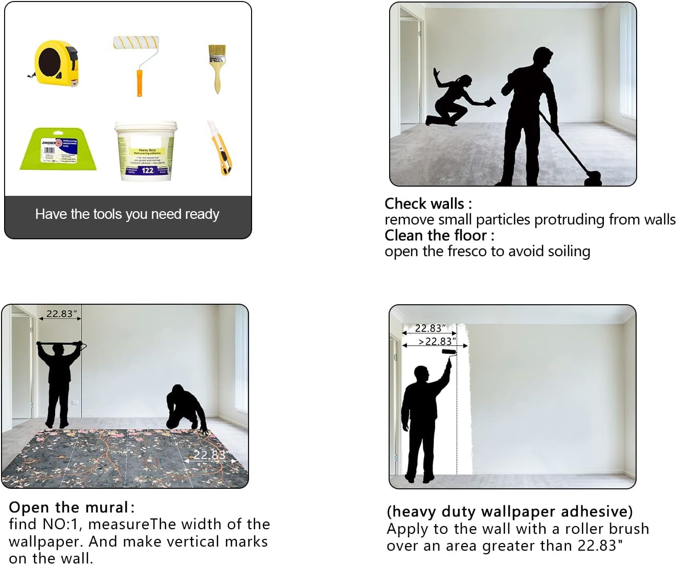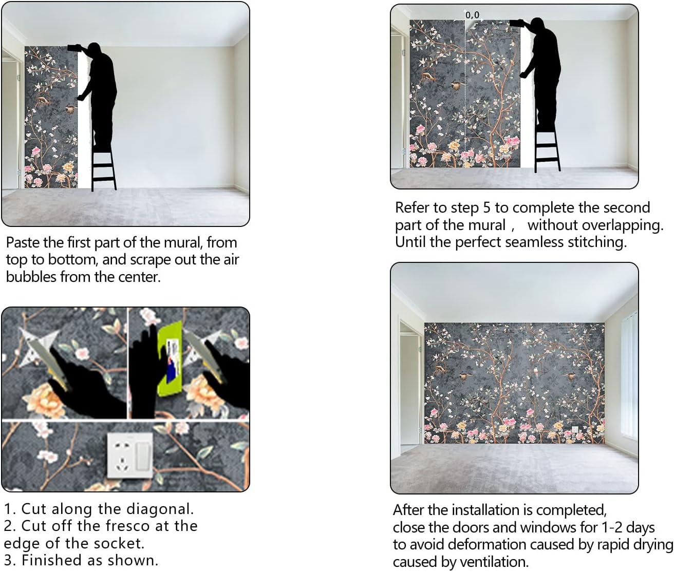 - It's easy to install: at the bottom of each mural we have a numbered sequence, You can refer to the instructions we provided and the main picture 6-7,just match the numbers and you'll be amazed!