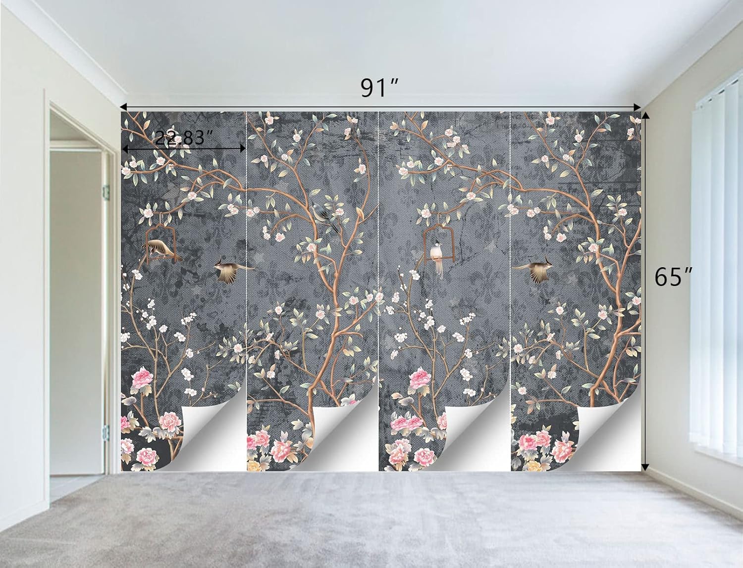 Grey Retro Floral wallpeper Living Room Bedroom Chinese Style Flower Bird Wall Mural - 91"x65"(Not Peel and Stick)