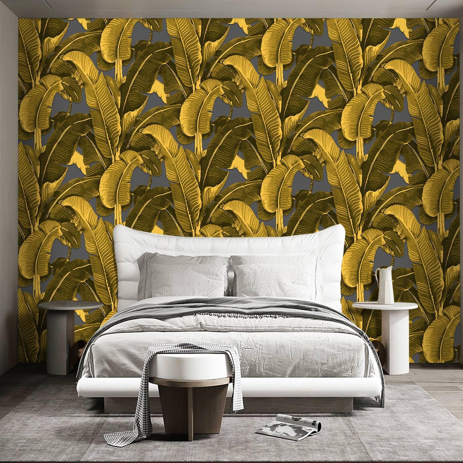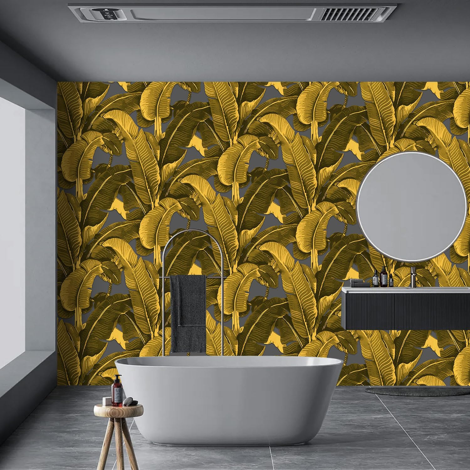 Vintage Gold Banana Leaf Bathroom wallpeper Living Room Bedroom Tropical Plant Wall Mural - 91"x65" (Not Peel and Stick)