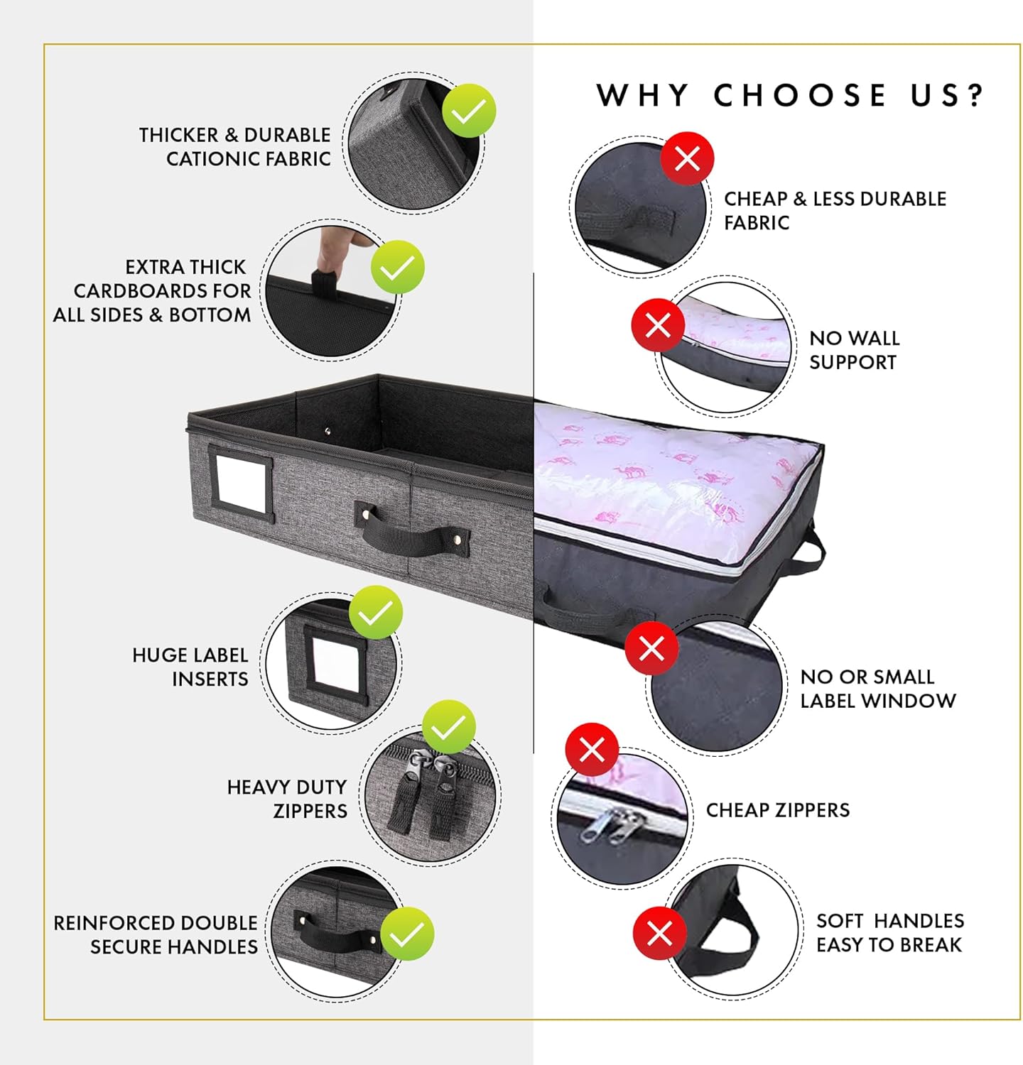 - ššššÆš² šš®šš² šš¢š©š©šš« šš„šØš¬š®š«š: Committed to safety and organization, our under bed flat storage boxes are precisely tailored. The zipper of our storage containers for under the bed ensures that the items inside are protected from dust and other elements that can cause damage. Our under bed storage with lid are pusposely designed with durability and strength making it ideal for flat clothing storage that require frequent opening and closing, or those that carry heavy loads.