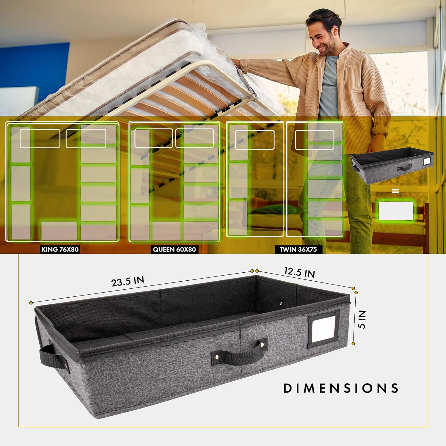 - šššš šššš¢šØš§š¢š šš„šØšš” ššššš«š¢šš„: Made from premium quality fabric, our 23.5x12.5x5" Under Bed Storage Containers With Lids are durable, sturdy, & carefully designed to hold large quantities of clothes, blankets, shoes, & various bed accessories. These under bed storage dorm drawers are designed to fit perfectly under your bed for efficient bed room organization and storage, making it an under bed organizer that will easily blend into your home's aesthetic style.