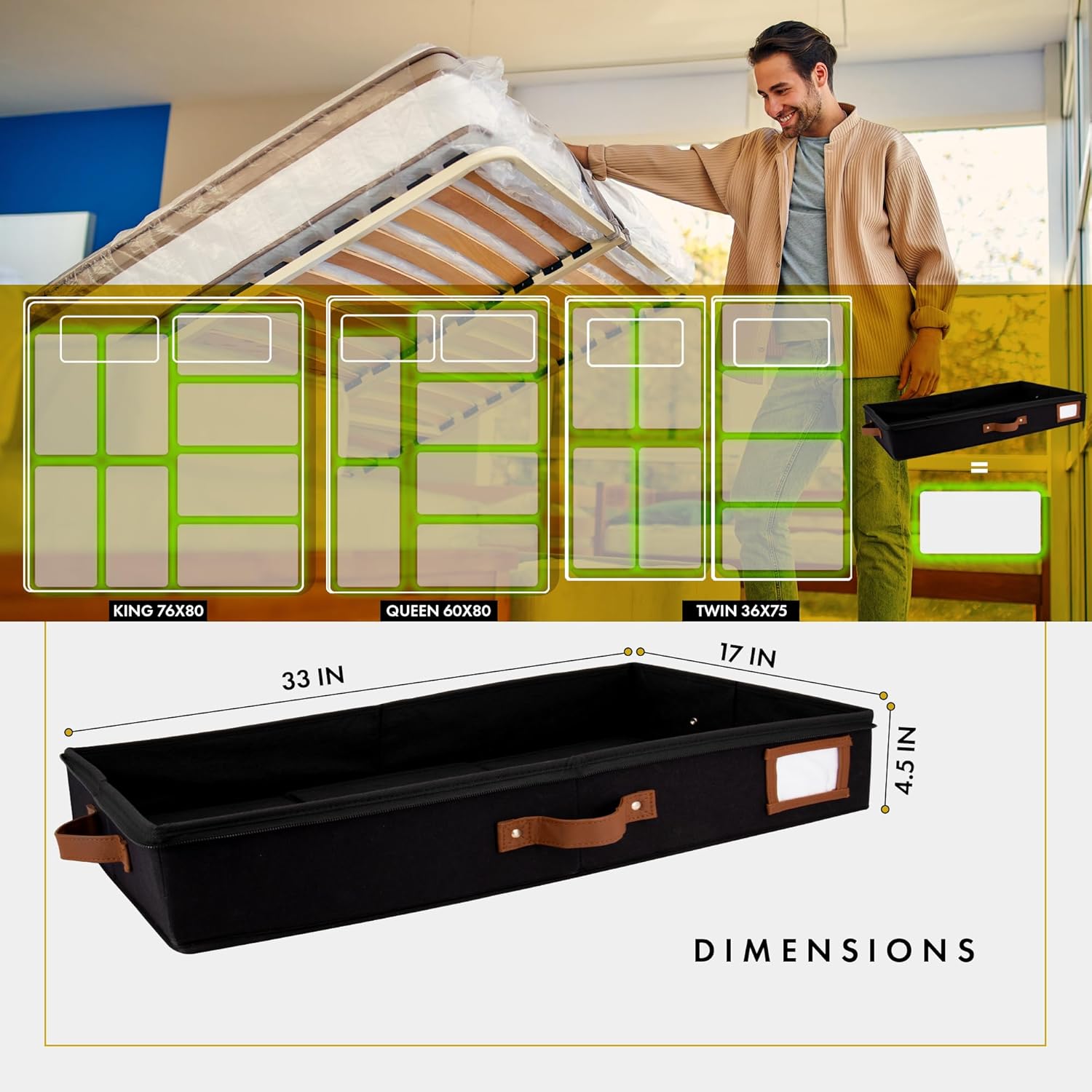 - šš®š©šš«š¢šØš« ššš§šÆšš¬ & ššššš«š¢šš„: Made from premium quality canvas fabric, our 33x17x4.5" Plastic Under Bed Storage Containers With Lids are durable, sturdy, & carefully designed to hold large quantities of clothes, blankets, shoes, & various bed accessories. These low profile storage containers are designed to be an efficient bed room organization and storage. Our low profile under bed storage pack comes with under bed organizer that will easily blend into your home's aesthetic style.
