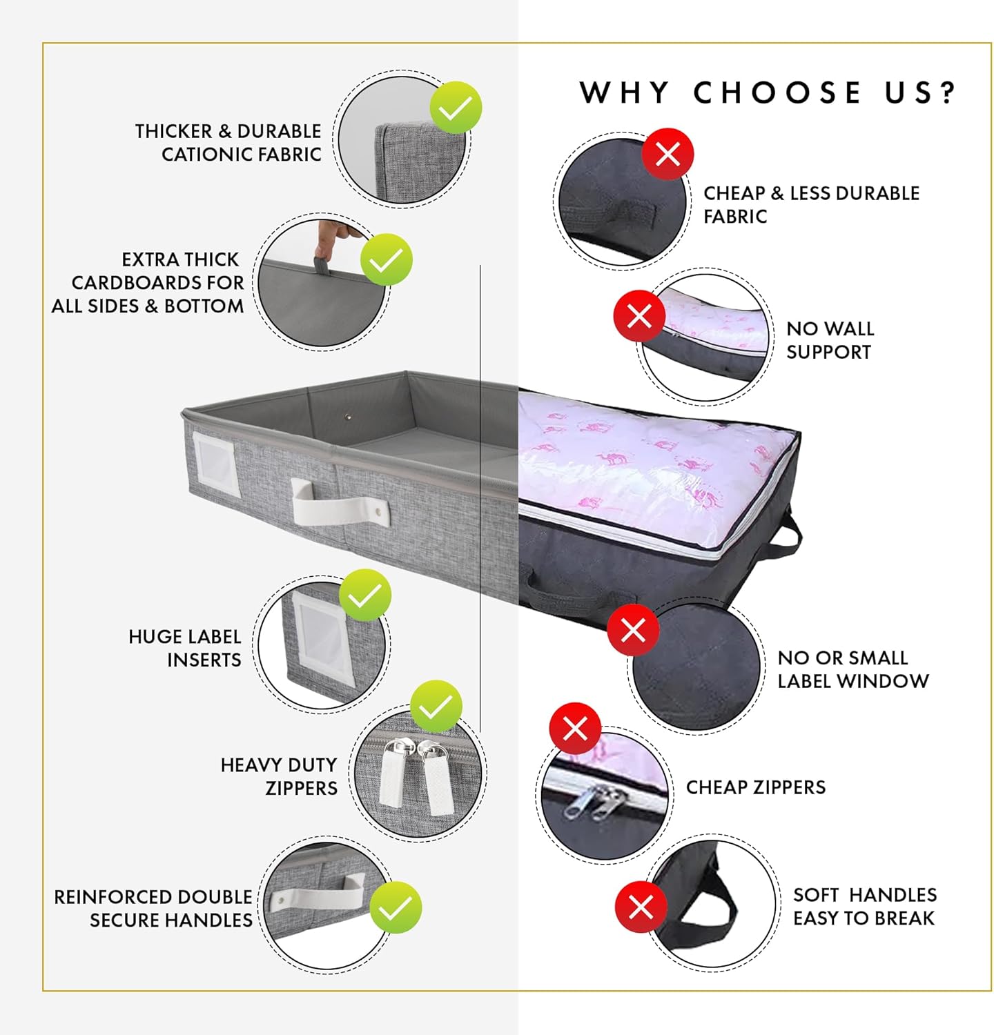- ššššÆš² šš®šš² šš¢š©š©šš« šš„šØš¬š®š«š: Committed to safety and organization, our under bed flat storage boxes are precisely tailored. The zipper of our storage containers for under the bed ensures that the items inside are protected from dust and other elements that can cause damage. Our under bed storage with lid are pusposely designed with durability and strength making it ideal for flat clothing storage that require frequent opening and closing, or those that carry heavy loads.