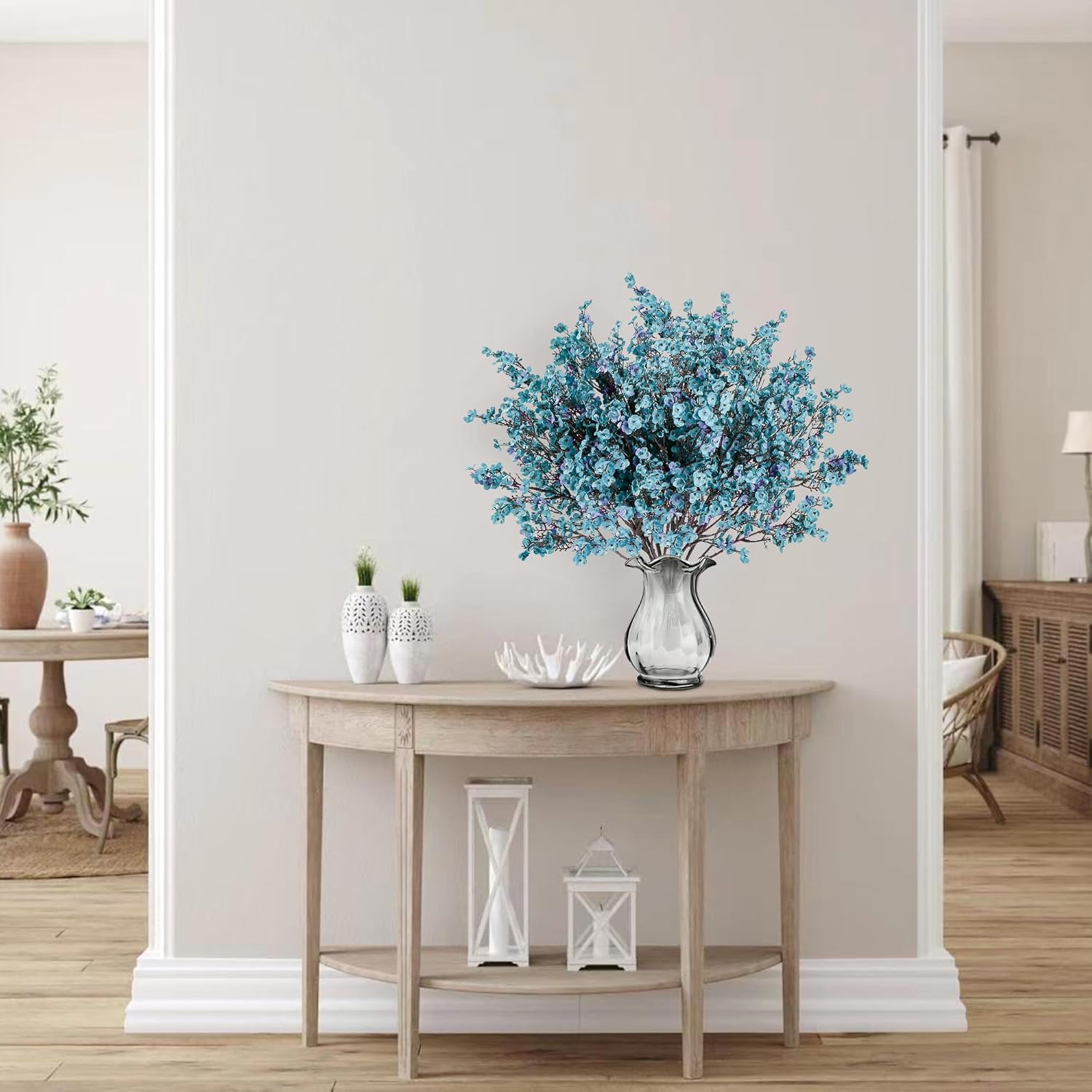 Sggvecsy 15 Pcs Babys Breath Artificial Flowers Gypsophila Bouquets Bulk Real Touch Fake Silk Flowers for Home DIY Floral Arrangement Table Centerpiece Fall Thanksgiving Autumn Decoration (Fall Blue)