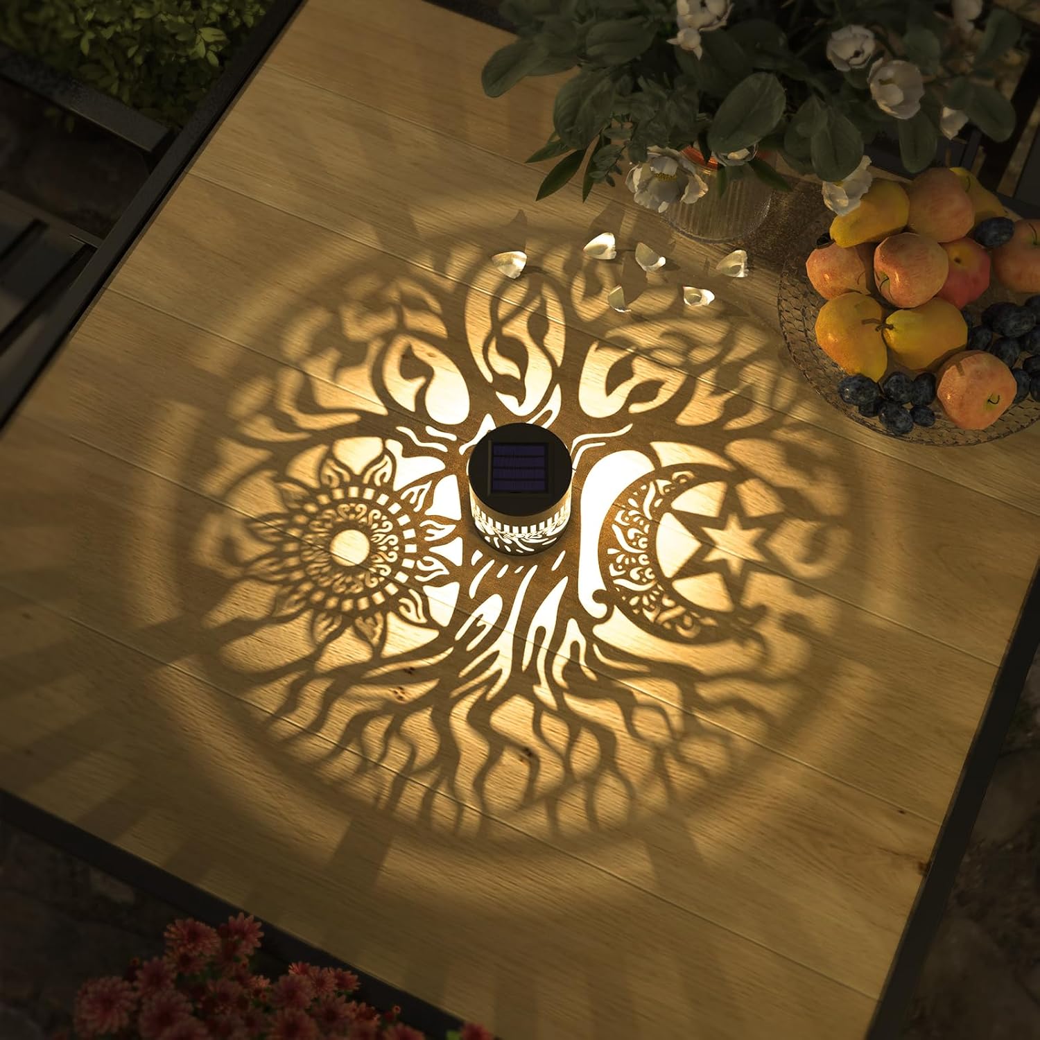 - Good Decoration: 10 lumens of warm yellow light. The small fence solar lights can project a unique and beautiful lotus pattern. In a dim environment, the solar lights can illuminate a corner of the fence or the wall and create a beautiful and warm atmosphere. They are very suitable as holiday decorations and gifts for relatives and friends