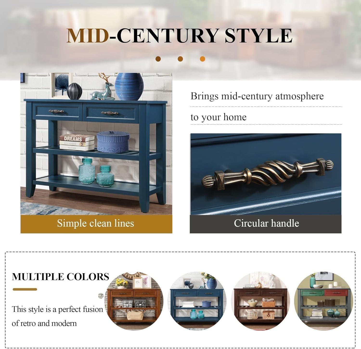 - ćMultifunctional Consoleć This console can be used not only as a porch table and sideboard, but also as a sofa table, porch table and buffet table. You can put it in the kitchen, bedroom, hallway, living room, office, etc. A space-saving desk can help you organize your supplies and keep your room clean and organized.
