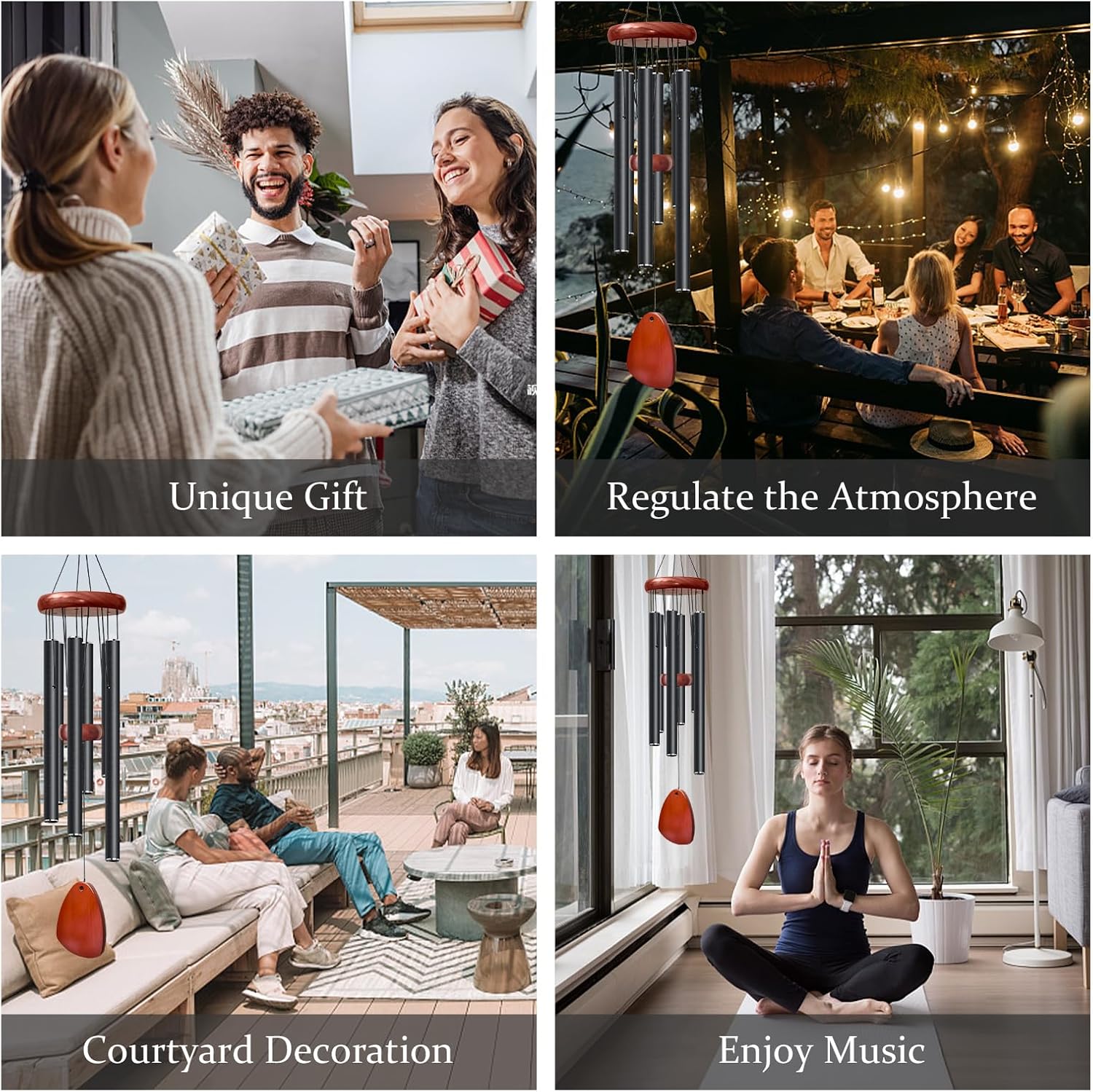 - ♬ 【Calm Your Mind】: Let the outdoor wind chimes dance in the breeze, composing a serene nature melody that soothes your soul and cultivates a tranquil ambiance. Enhance your focus and peace, making them a perfect companion for activities like meditation, yoga, Zen practices, and more.