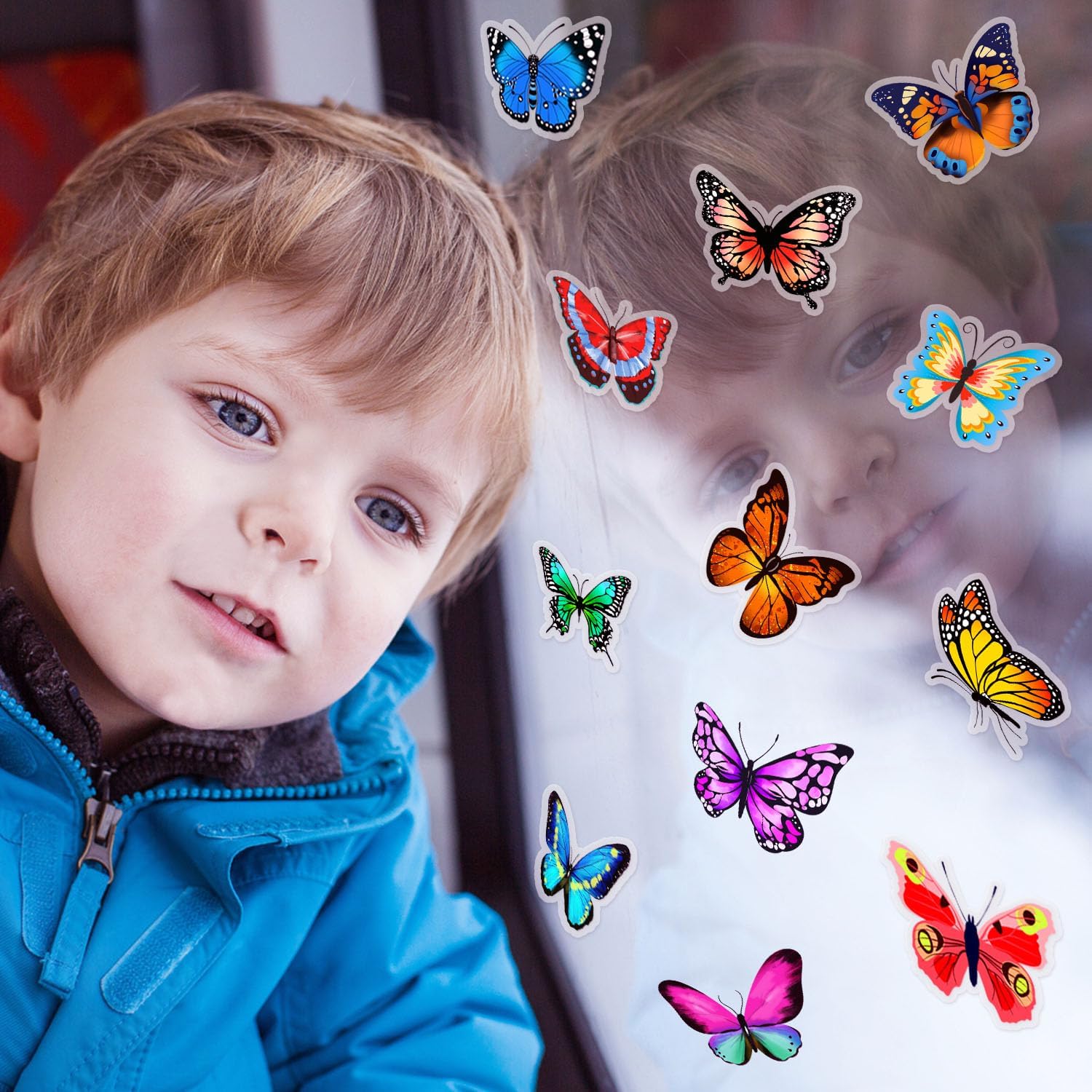 Window Clings Stickers for Kids Window Gel Clings Decals Thick Gel Clings Toddlers and Adults Classroom Home Nursery Airplane Birthday Party Supplies (Butterfly)
