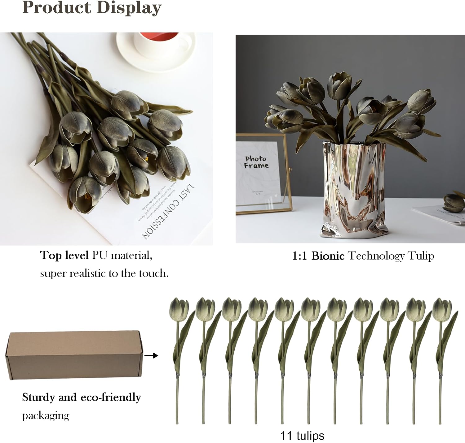 Buart Black-Coffee Flowers Artificial Luxury Big Tulip Valentine's Day Mother's Day Easter Home Kitchen Wedding Decorations(11pcs)