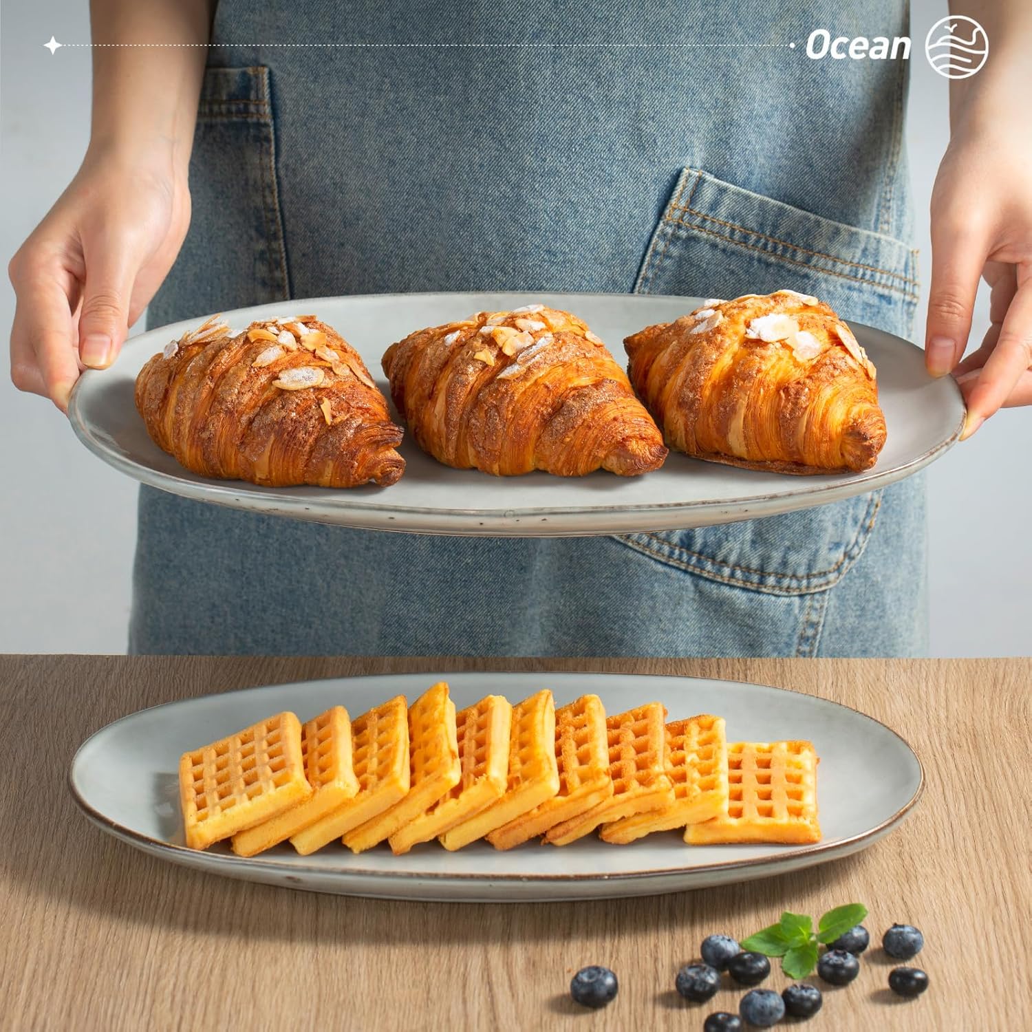 • Sturdy and Enduring: Ocean Series serving platters for entertaining is made of premium stoneware, which is fired by high temperature and mix of all-natural clays. Each piece of the serving plates is sturdy and enduring.