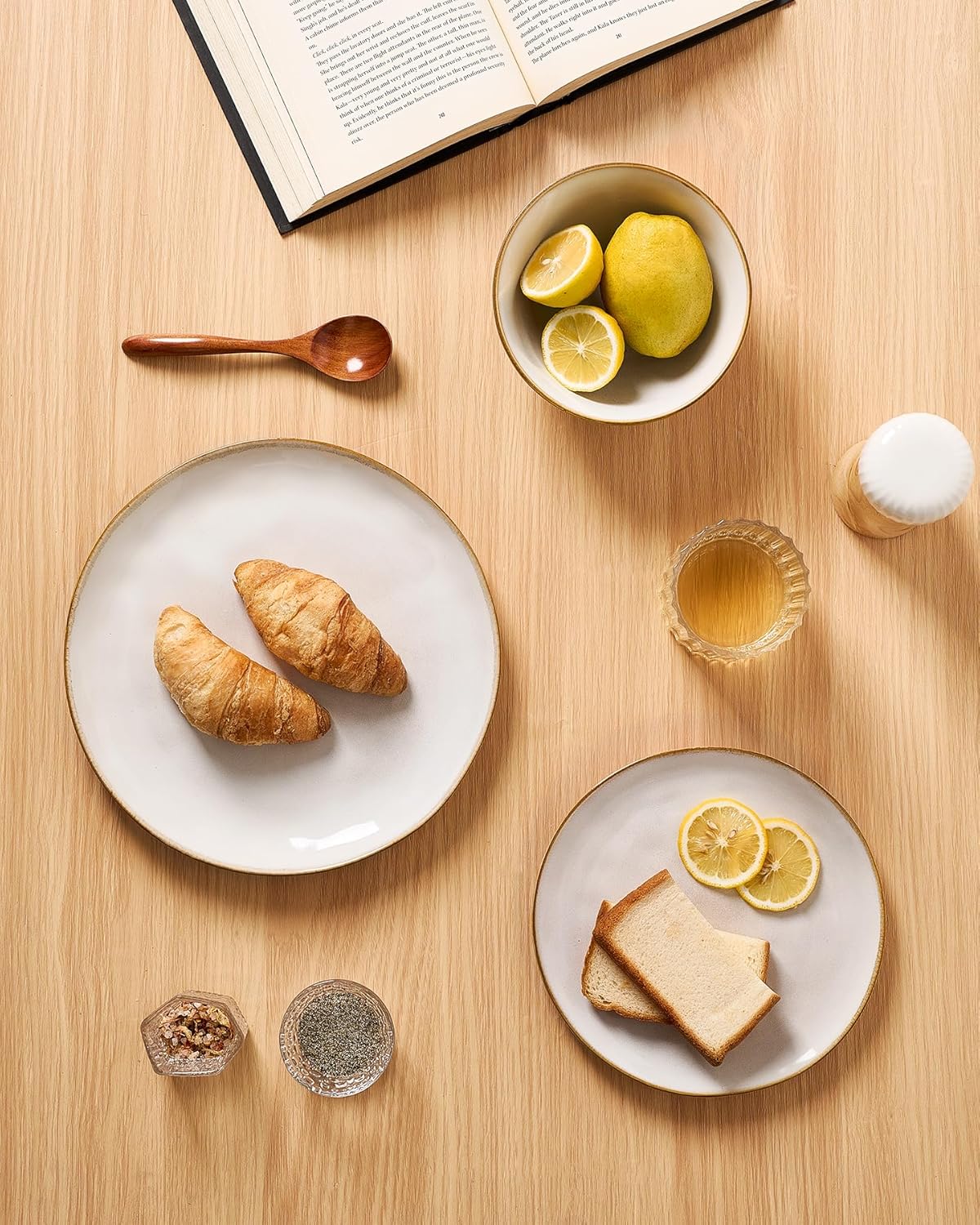 Famiware Dinnerware Sets for 4, Ocean Round 12-Piece Kitchen Plates and Bowls Sets, Reactive Glaze, Microwave and Dishwasher Safe, Scratch Resistant, Cappuccino White