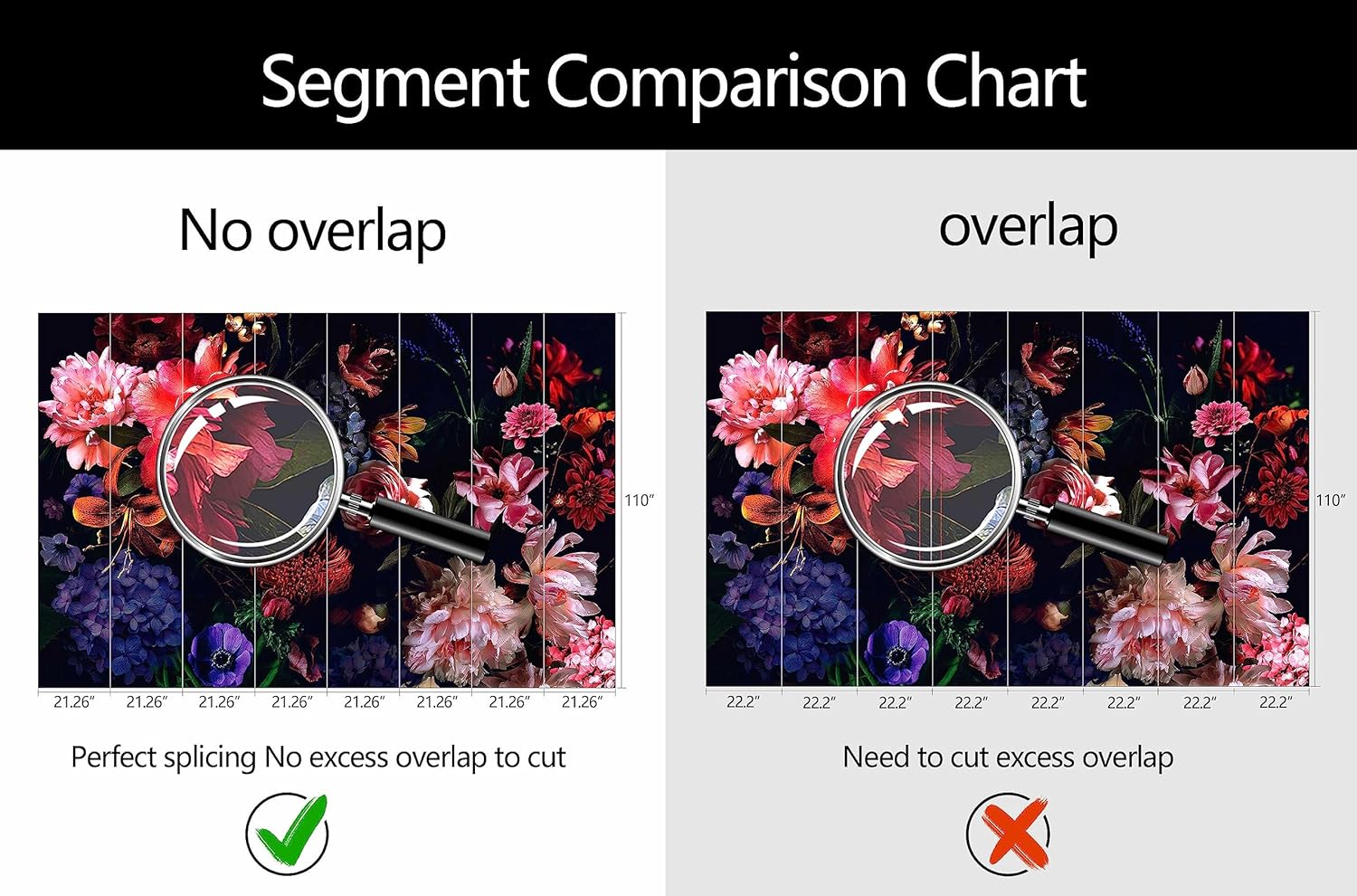 - Mural Size: The total size of this mural wallpaper is 170" x 110" / 432CM x 280CM (W x H), cut into 8 pieces, each measuring 21.26" x 110", for easy installation.