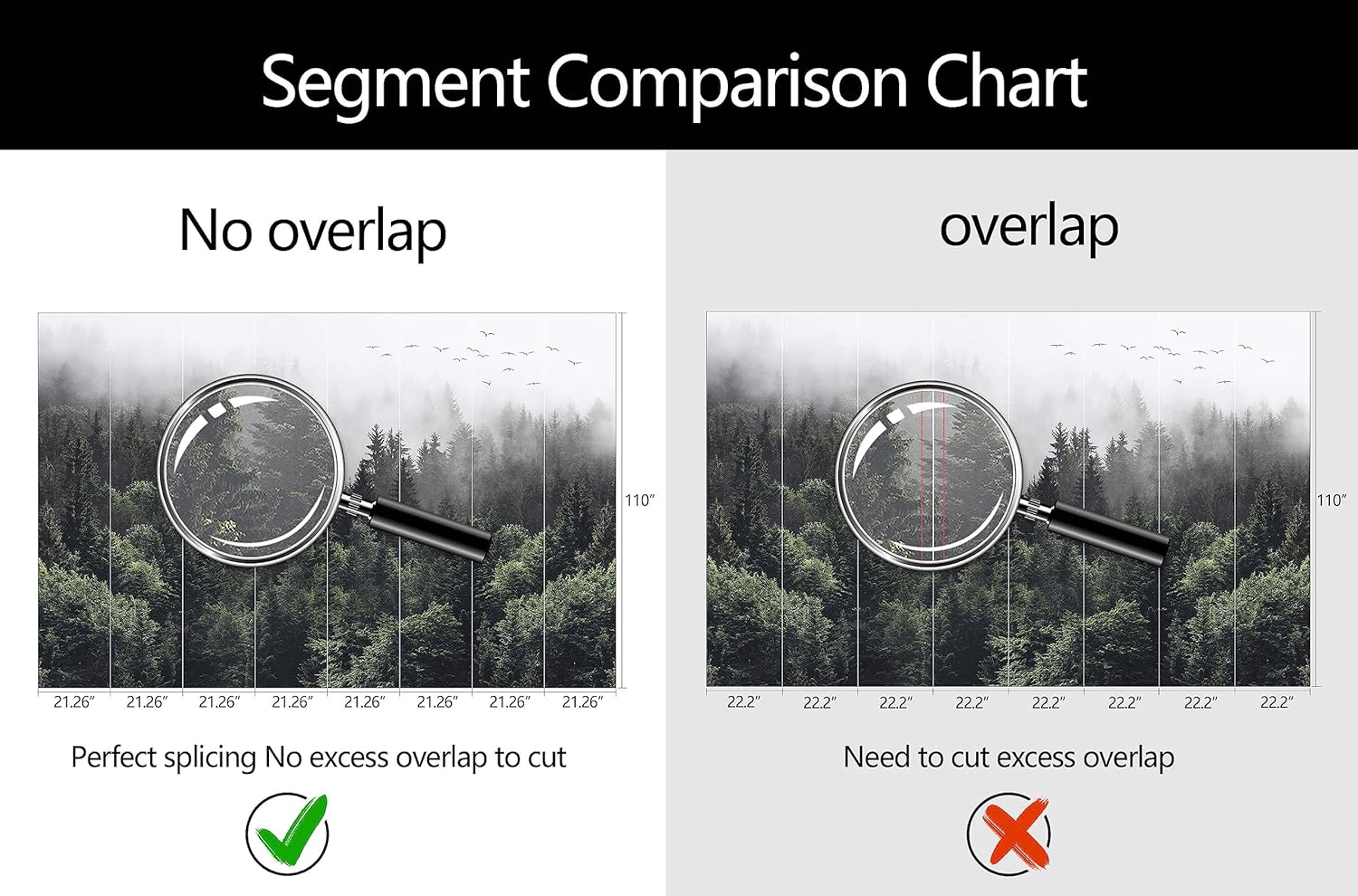 - Mural Size: The total size of this mural wallpaper is 170" x 110" / 432CM x 280CM (W x H), cut into 8 pieces, each measuring 21.26" x 110", for easy installation.