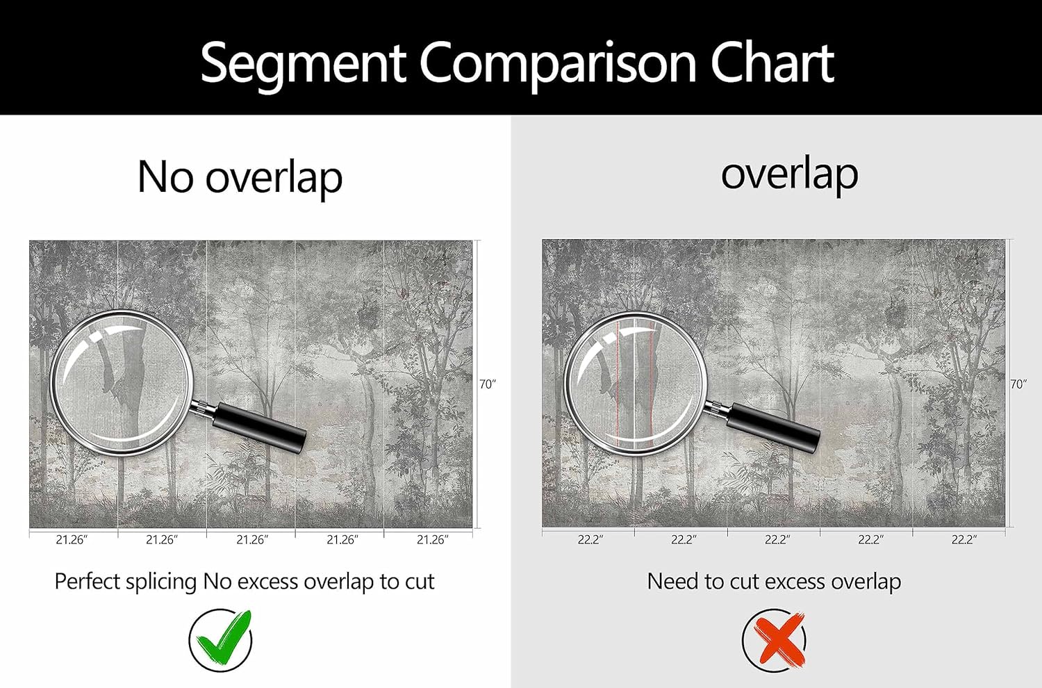 - Mural Size: The total size of this mural wallpaper is 106" x 70" / 270CM x 178CM (W x H), cut into 5 pieces, each measuring 21.26" x 70", for easy installation.