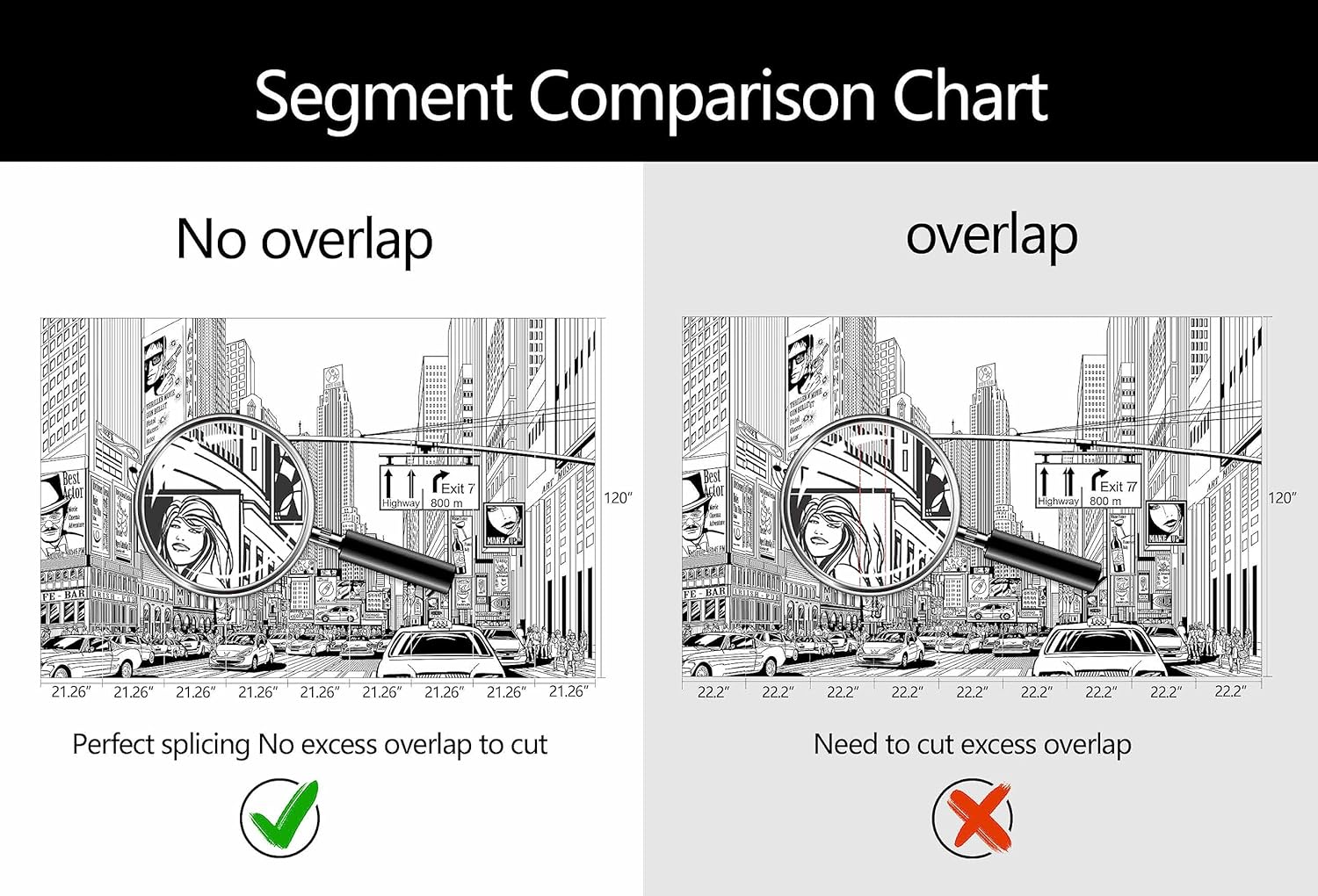 - Mural Size: The total size of this mural wallpaper is 191" x 120" / 486CM x 305CM (W x H), cut into 9 pieces, each measuring 21.26" x 120", for easy installation.