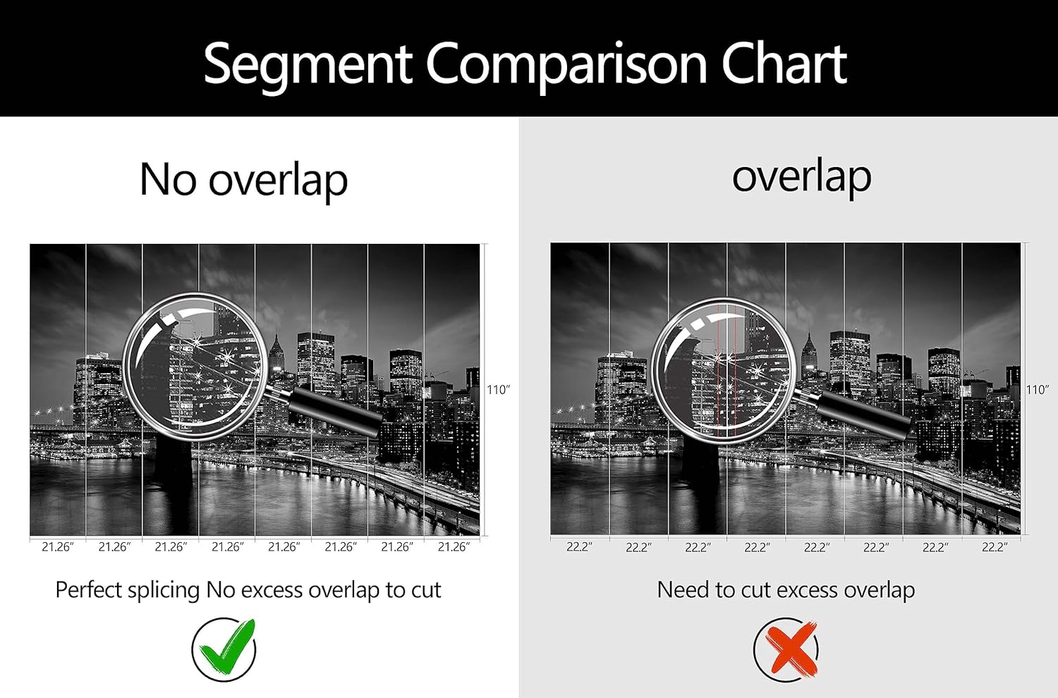 - Mural Size: The total size of this mural wallpaper is 170" x 110" / 432CM x 280CM (W x H), cut into 8 pieces, each measuring 21.26" x 110", for easy installation.