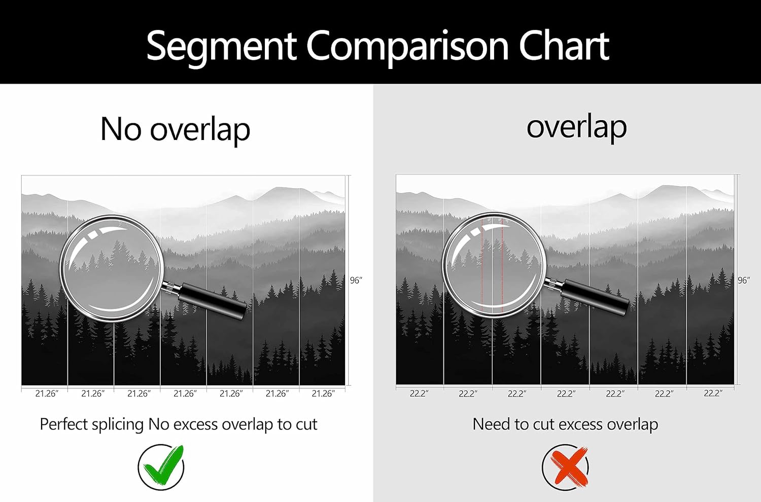- Mural Size: The total size of this mural wallpaper is 149" x 96" / 378CM x 244CM (W x H), cut into 7 pieces, each measuring 21.26" x 96", for easy installation.