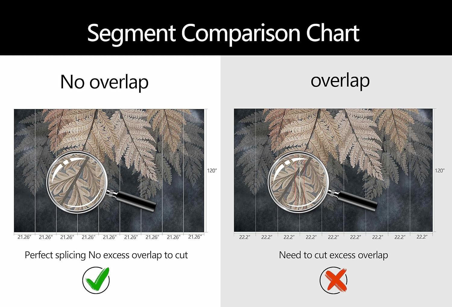 - Mural Size: The total size of this mural wallpaper is 191" x 120" / 486CM x 305CM (W x H), cut into 9 pieces, each measuring 21.26" x 120", for easy installation.