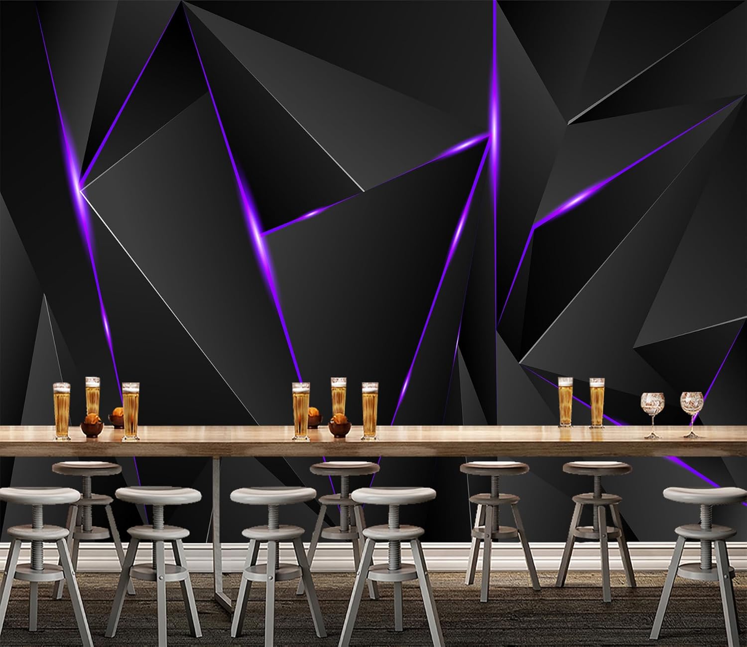 WFBHUA-3d Black Geometric Wallpaper Purple Lines Large Background Wall Mural for Bedroom Living Room (No Peel and Stick)