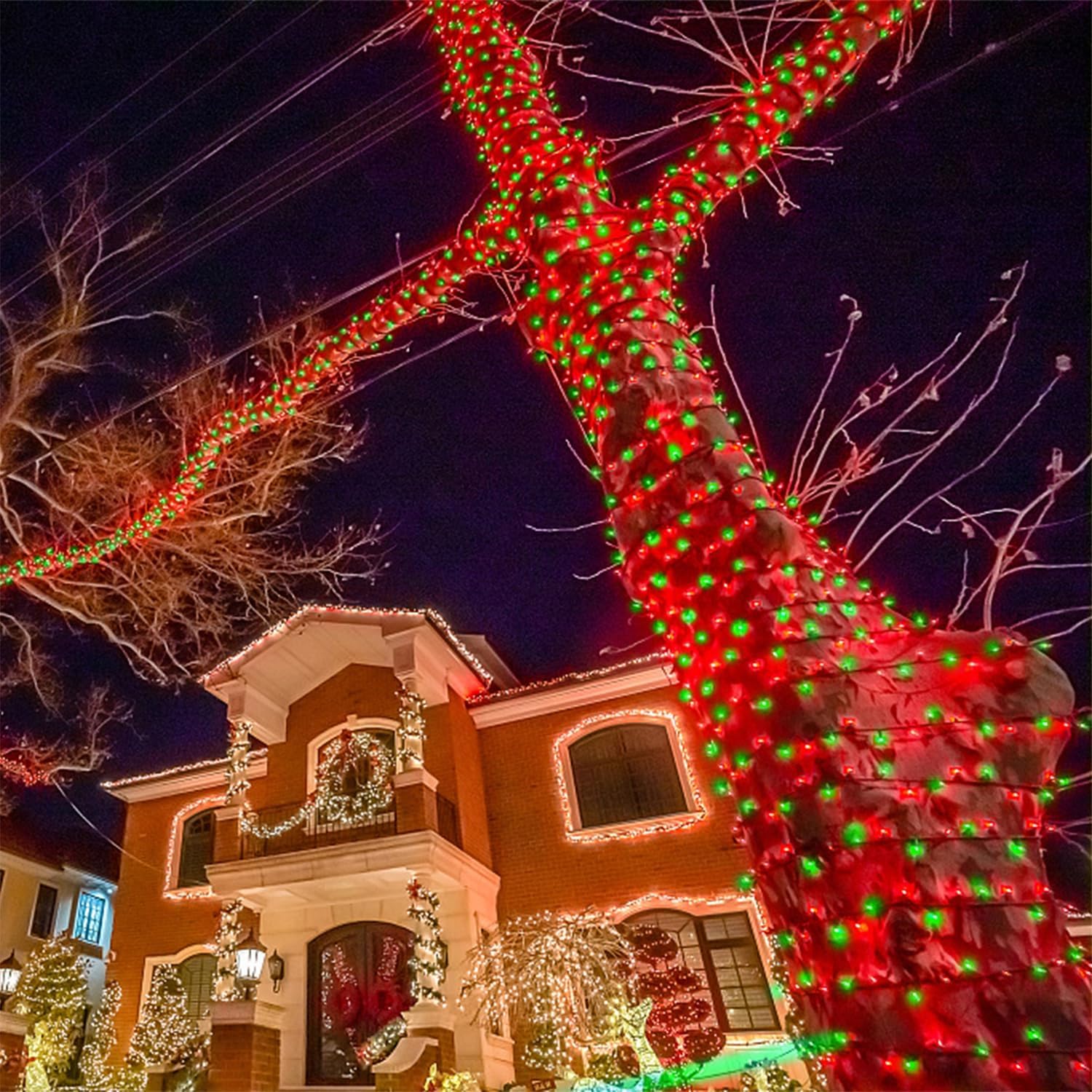 - 66ft Christmas Decorations string lights: With 200 Red & Green individual LED bulbs. Each green wire lights has end-to-end connection, you can connect up to 4 sets together to illuminate a wider range. Fit different occasions, moods, feelings, holidays, festivals, anniversaries, etc