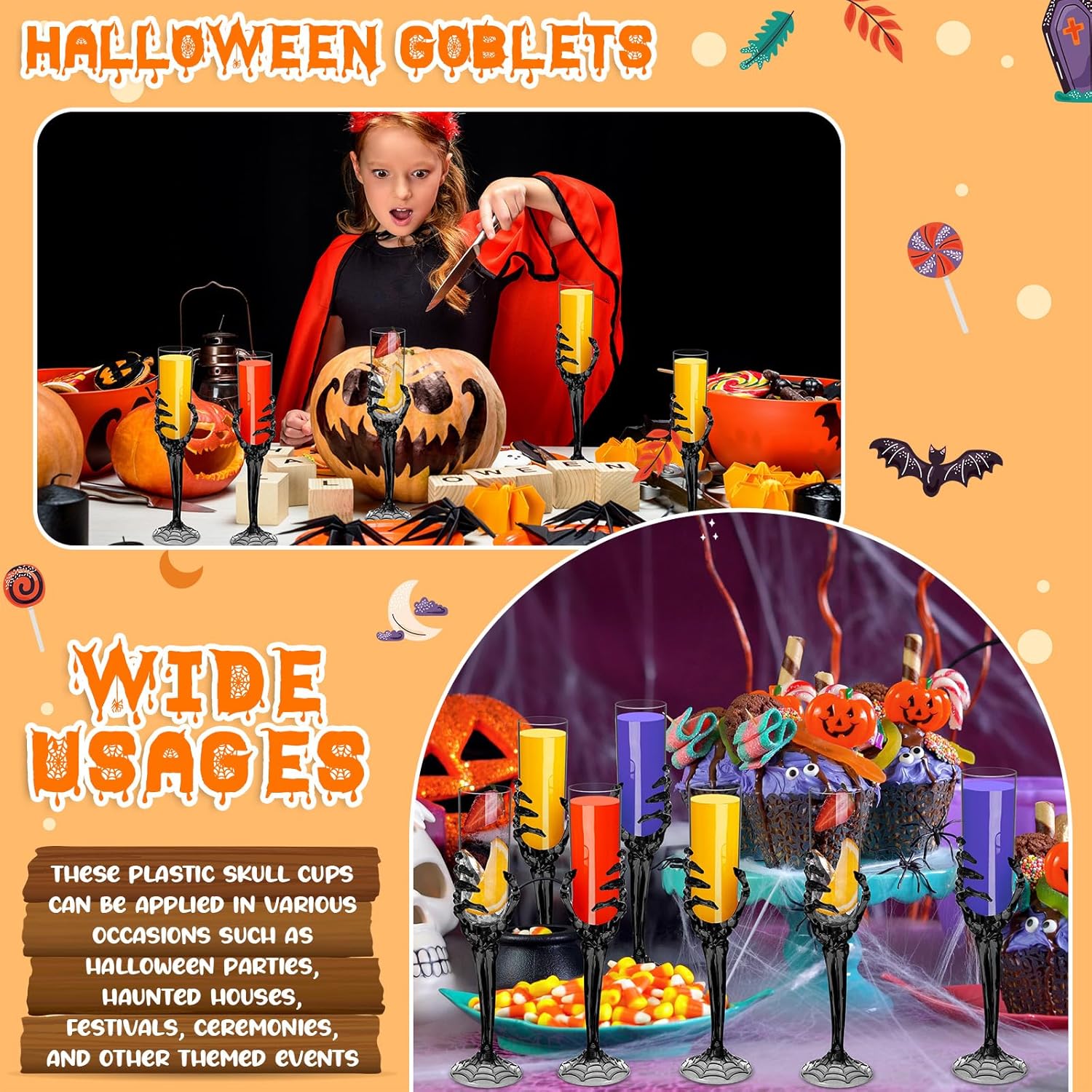 - Wide Application: these plastic skull cups can be applied in various occasions such as Halloween parties, festivals, ceremonies, and other themed events; They are suitable for both everyday use at home or for special occasions