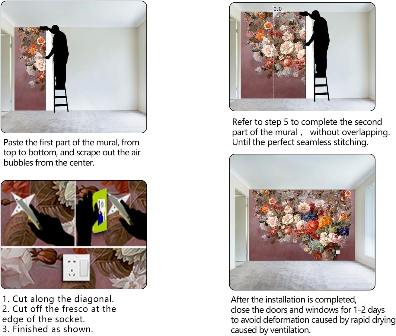 - It's easy to install: at the bottom of each mural we have a numbered sequence, You can refer to the instructions we provided and the main picture 6-7,just match the numbers and you'll be amazed!
