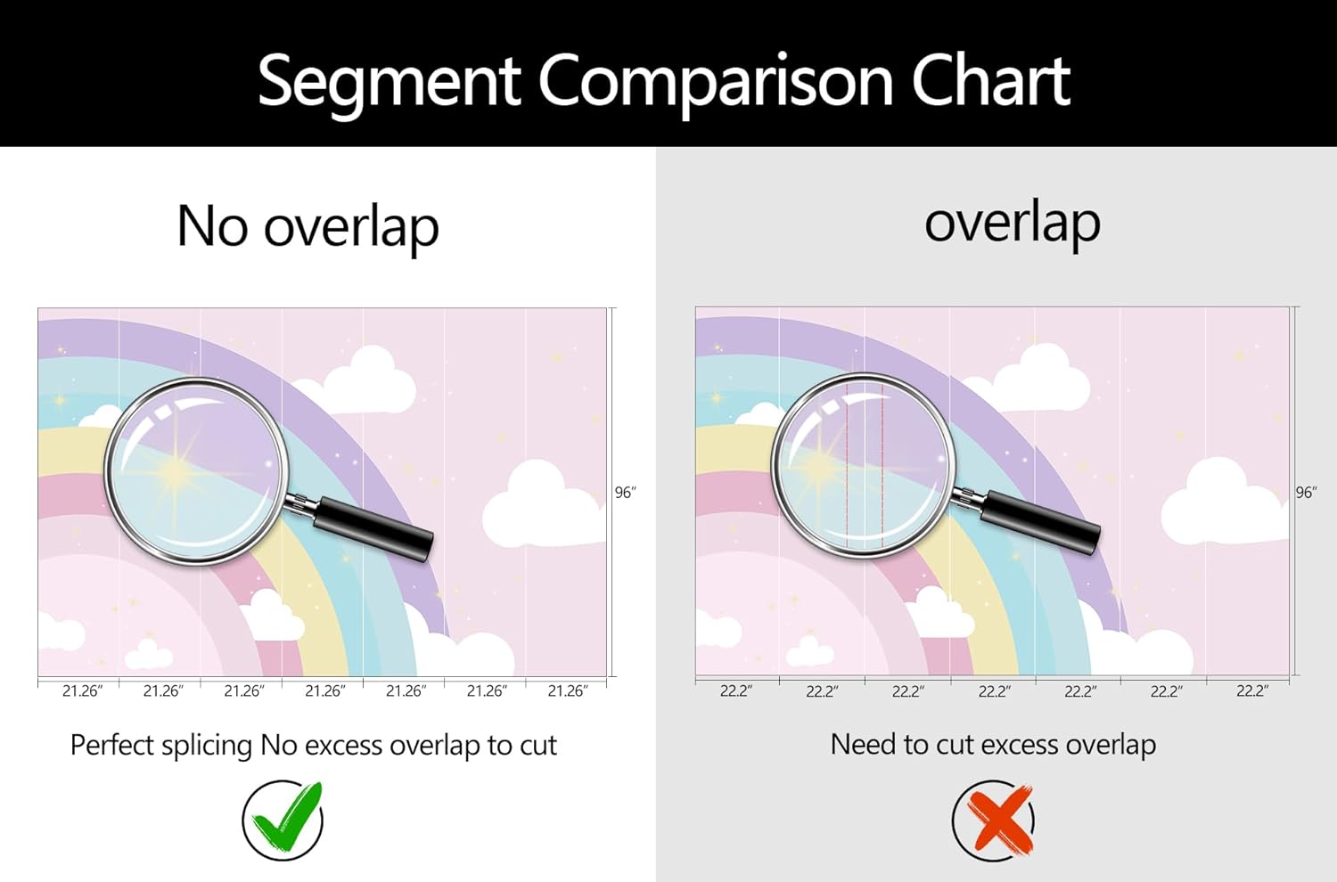 - Mural Size: The total size of this mural wallpaper is 149" x 96" / 378CM x 244CM (W x H), cut into 7 pieces, each measuring 21.26" x 96", for easy installation.