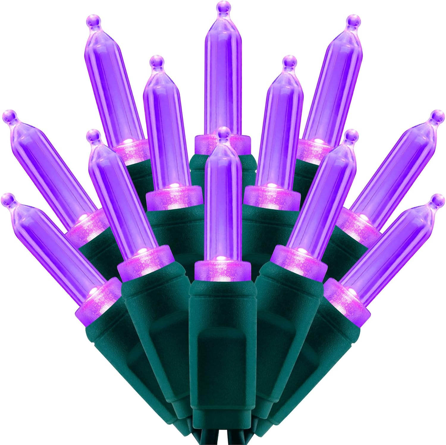 100 Purple One-Piece LED Christmas Lights, 33 ft Green Cord High Waterproof UL Certified T5 Outdoor String Lights (Purple)
