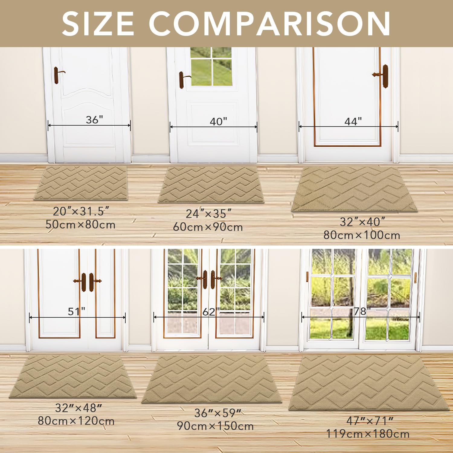 - WIDE USE: Our doormat widely used for all weather, works as front door mat, outdoor door mat, welcome door mats, indoor mats for entryway, shoe mat, dog doormat, floor mats, ect. It can scrap off dirt, water, dust,grit, sand,mud, slush, sleet, grass or retain, snow.