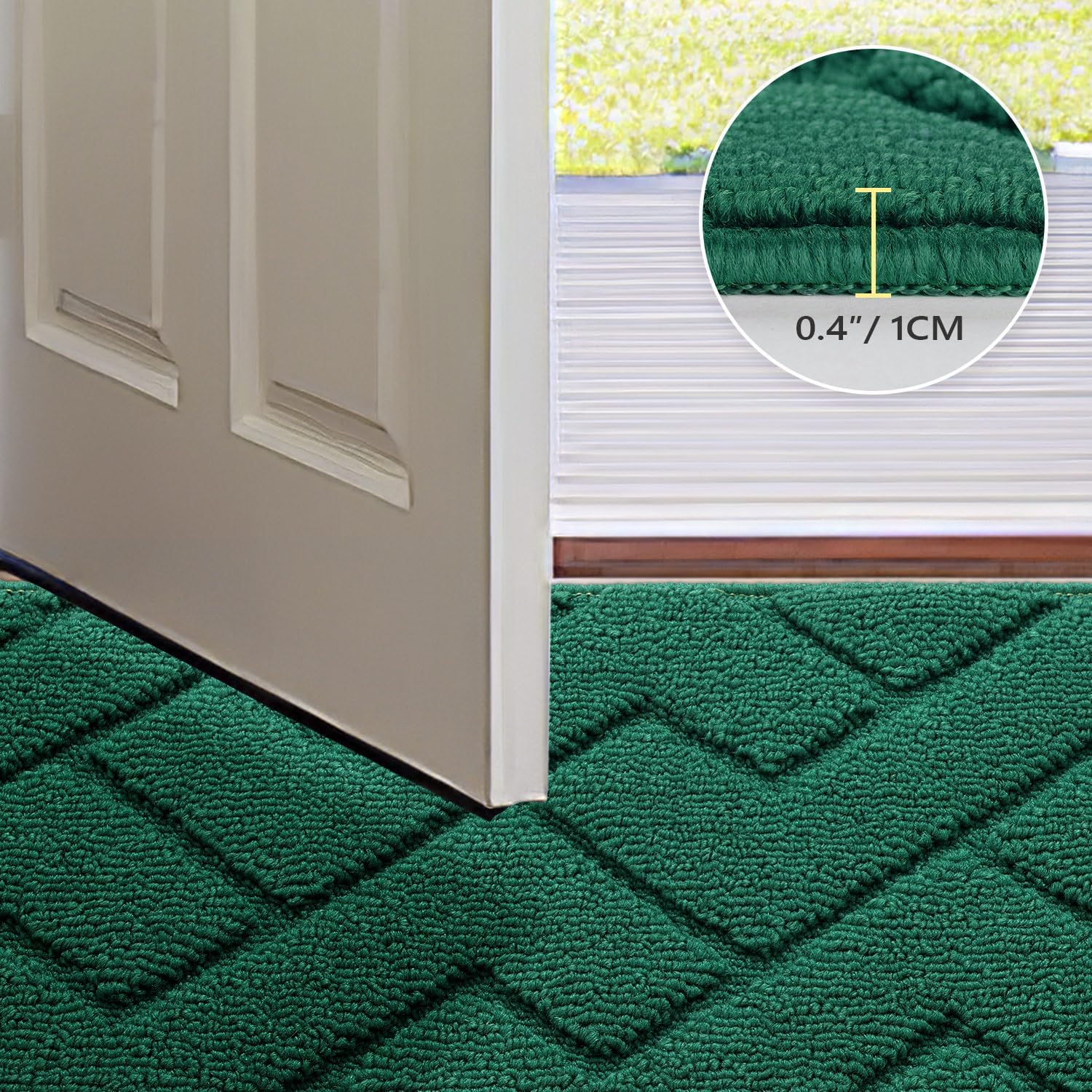 hicorfe Front Door Mat Outside Entrance,32"x40" Absorbent Muddy Dirt Resist Welcome Door Mats Outdoor Indoor,Stain and Fade Resistant,Non Slip Backing Entry Mat Doormat for Entryway(Evergreen)
