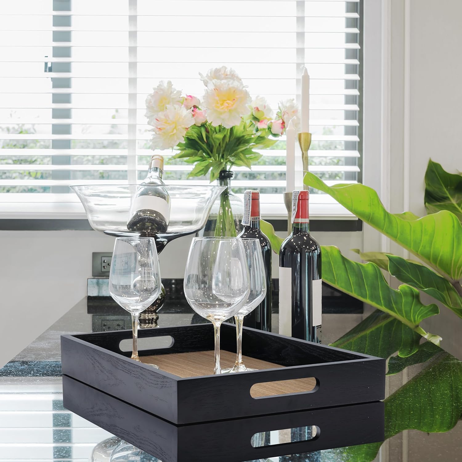 Wood Serving Tray with Handles, Home Decorative Wooden Rectangle Ottoman Decor Platter Vanity Tray for Breakfast Dinner Drinks Kitchen Dining Living Bathroom Restaurants Black Wooden
