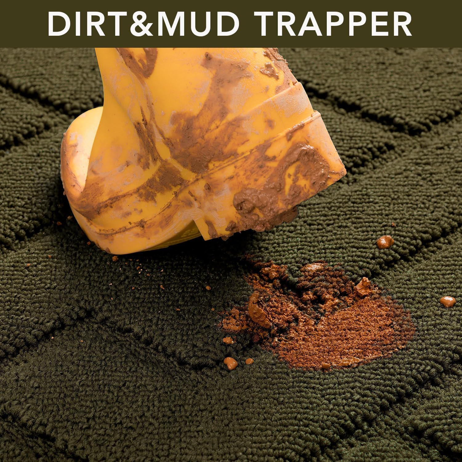 hicorfe Front Door Mat Outside Entrance,36"x59" Absorbent Muddy Dirt Resist Welcome Door Mats Outdoor Indoor,Stain and Fade Resistant,Non Slip Backing Entry Mat Doormat for Entryway(Oliver Green)