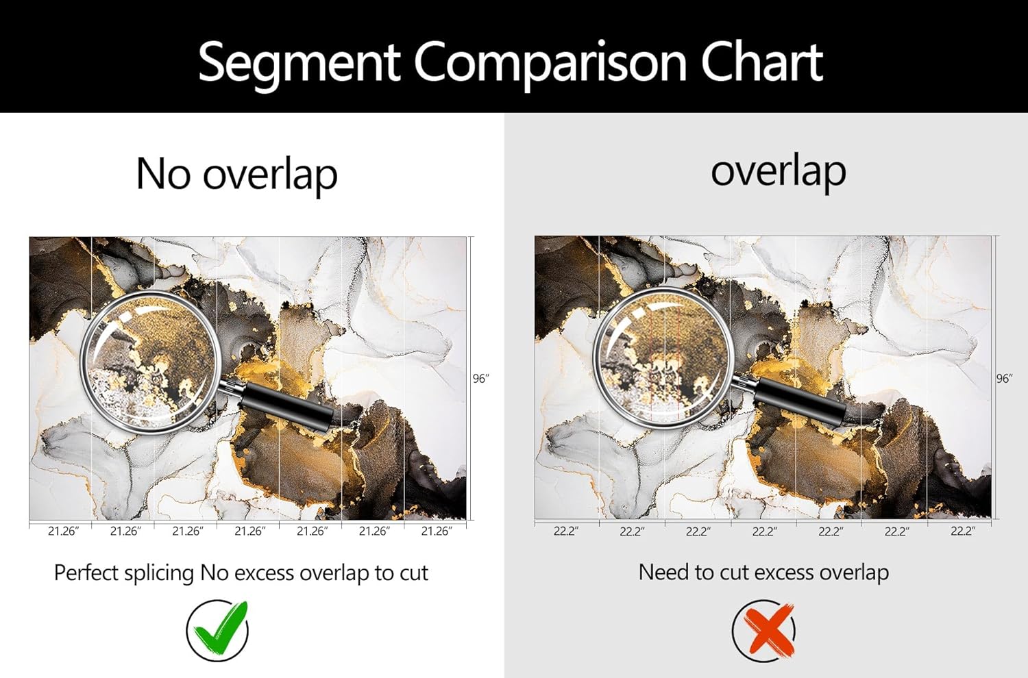 - Mural Size: The total size of this mural wallpaper is 149" x 96" / 378CM x 244CM (W x H), cut into 7 pieces, each measuring 21.26" x 96", for easy installation.