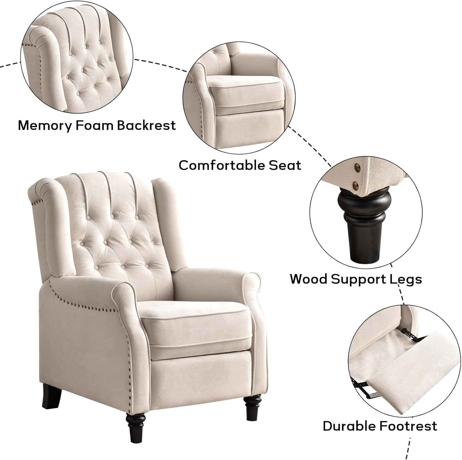 EBELLO 2 Pcs Pushback Recliner Chairs, Fabric Armchair Push Back Recliner with Rivet Decoration, Single Sofa Accent Chair for Living Room, Bedroom,Beige