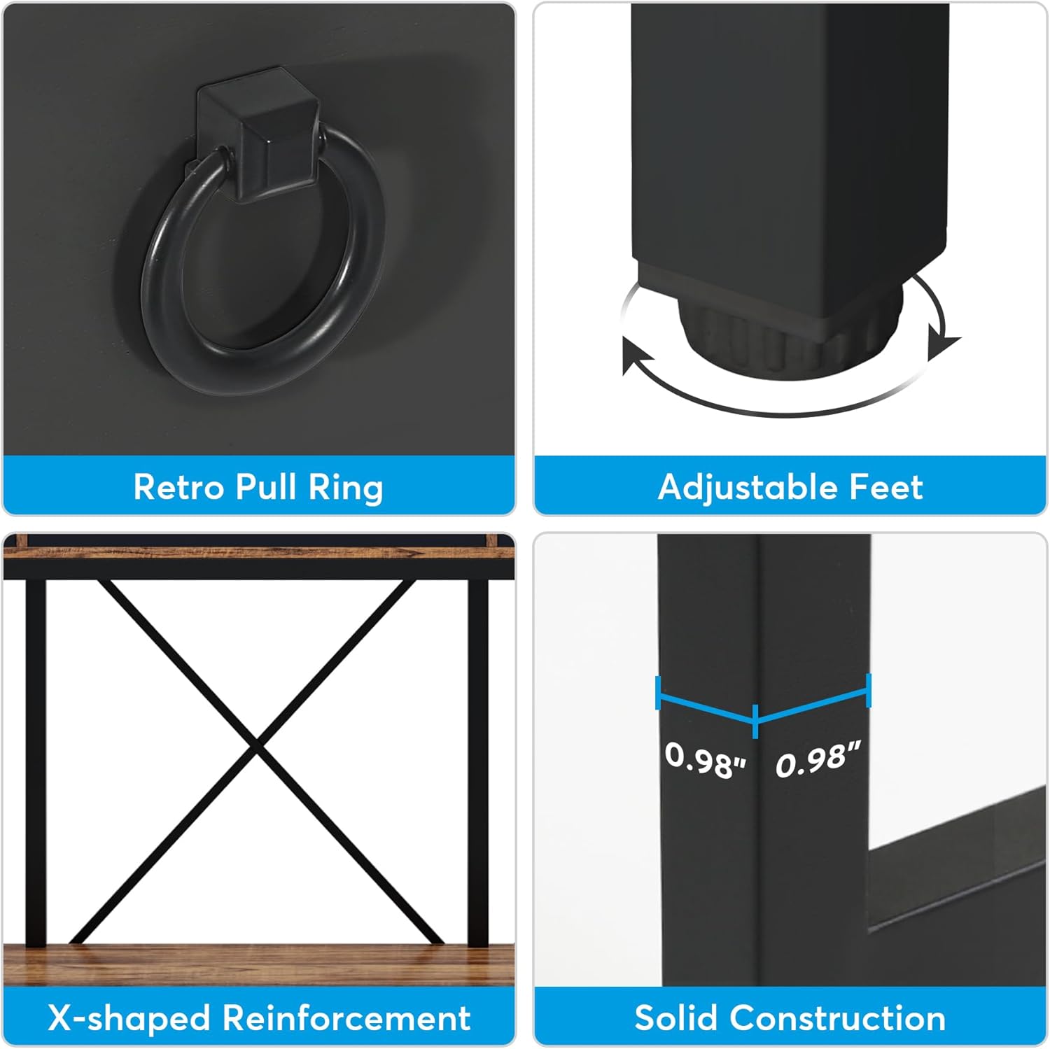 - [Lasting Quality]: Crafted with high-quality MDF and sturdy metal frames, this narrow console table is both stylish and built to last. The x-shaped crossbars provide additional stability, while the adjustable foot pads ensure that the table stands firm on any surface.