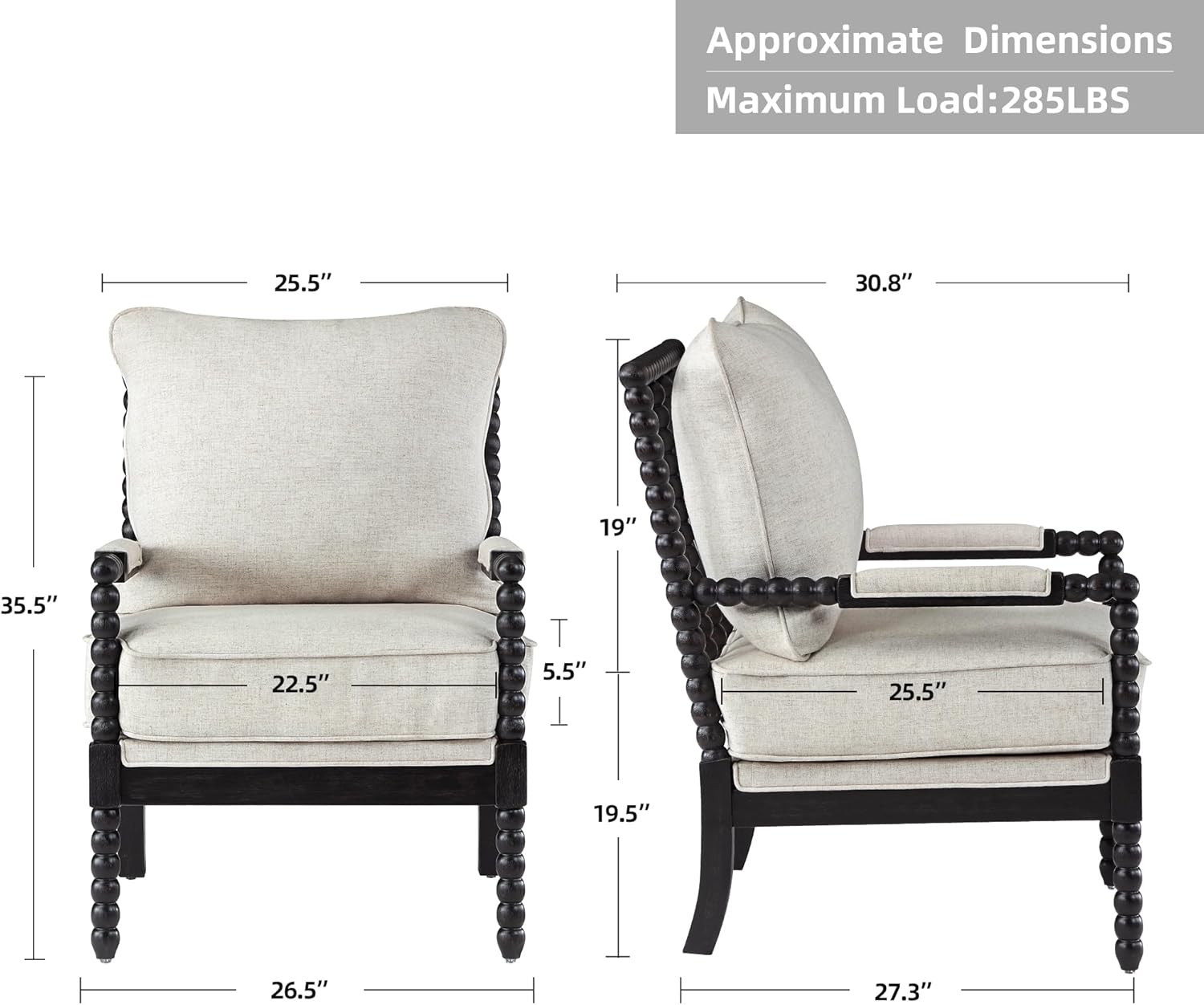 DUHOME Linen Fabric Spindle Accent Chair with Wood Frame,Bobbin Chair with High Resilience Spring Cushion and Armrest Pads, Leisure Armchair for Living Room Bedroom Farmhouse Home Office Belcony