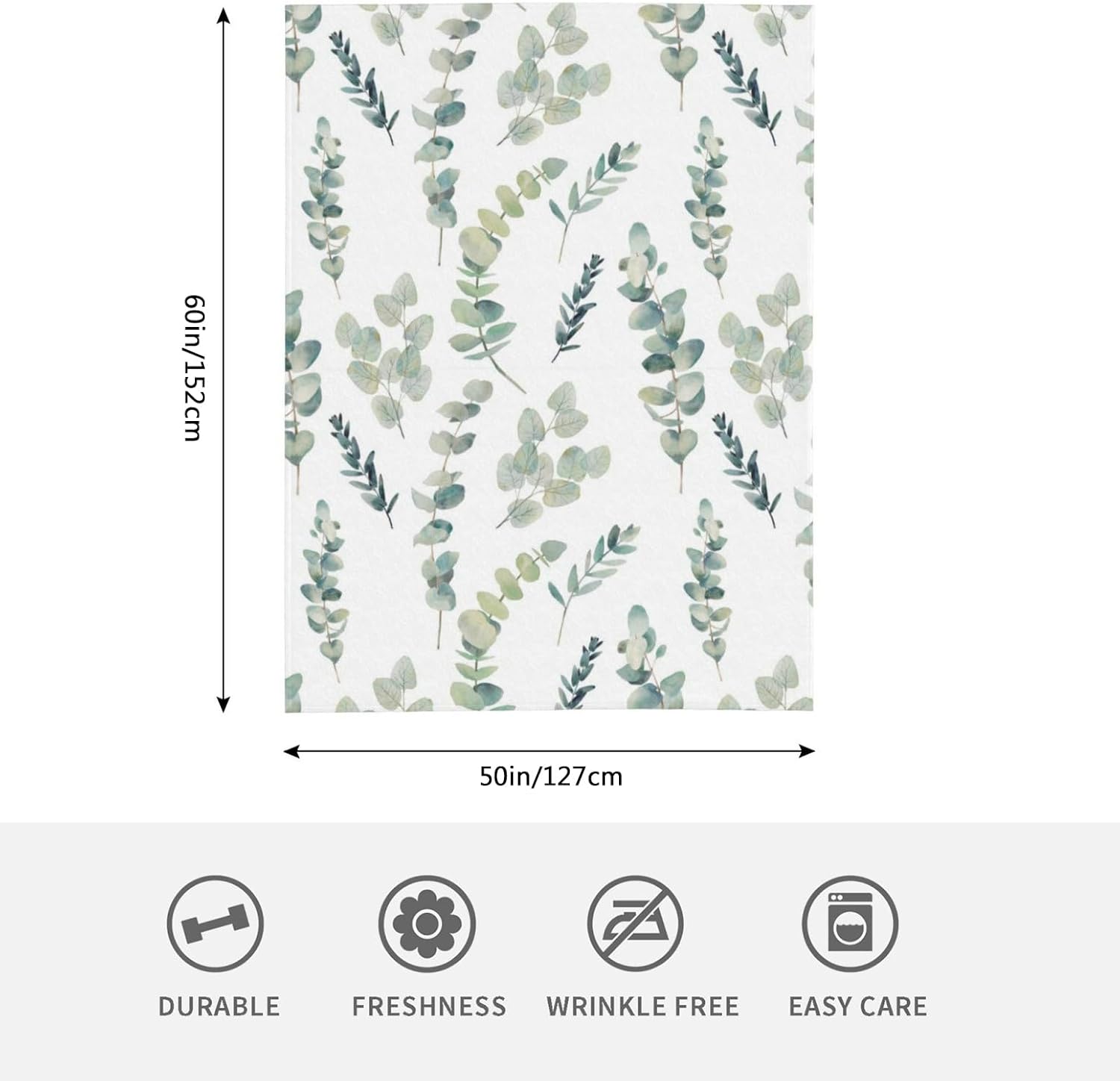 HGOD DESIGNS Watercolor Eucalyptus Flannel Fleece Bed Blanket Throw Blanket Lightweight Cozy Plush Blanket for Bedroom Living Rooms Sofa Couch 50"x60"