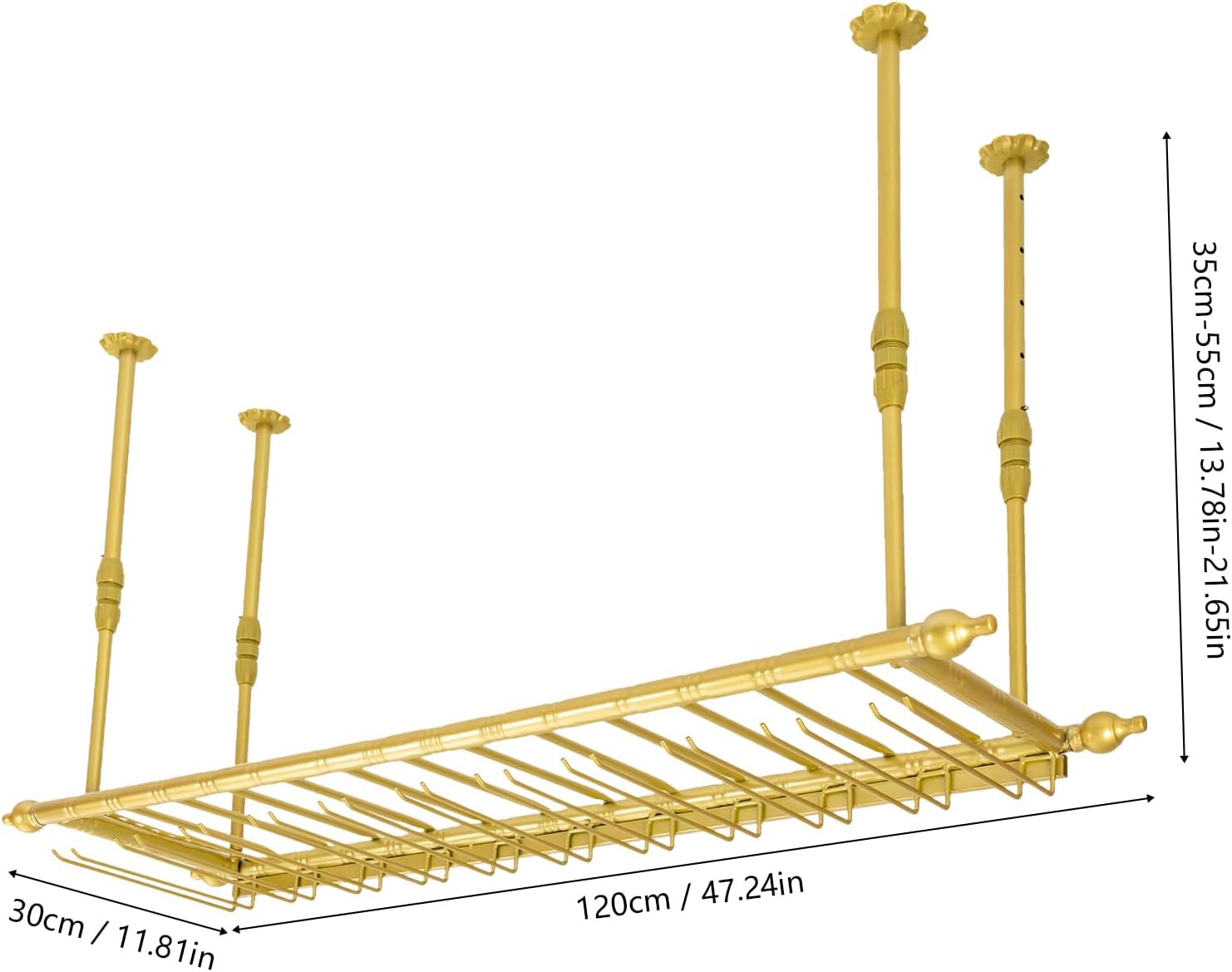 Hanging Wine Rack 47" Wall Mounted Wine Glass Rack Ceiling Adjustable Hanging Bar Glass Holder Shelves for Kitchen Bar Restaurants Industrial Iron Storage Shelf