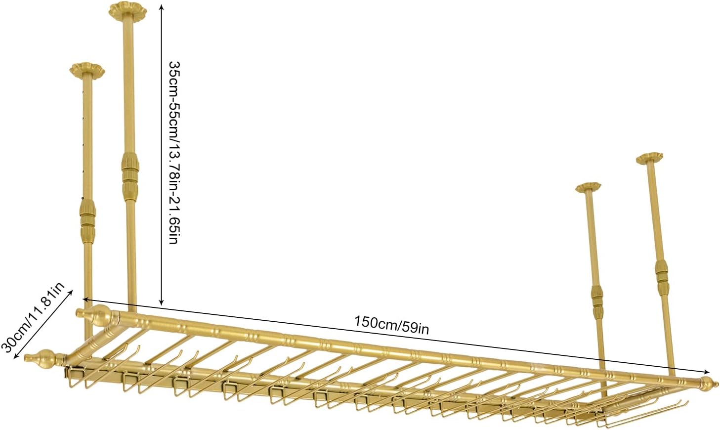 Hanging Wine Rack 59" Wall Mounted Wine Glass Rack Ceiling Adjustable Hanging Bar Glass Holder Shelves for Kitchen Bar Restaurants Industrial Iron Storage Shelf