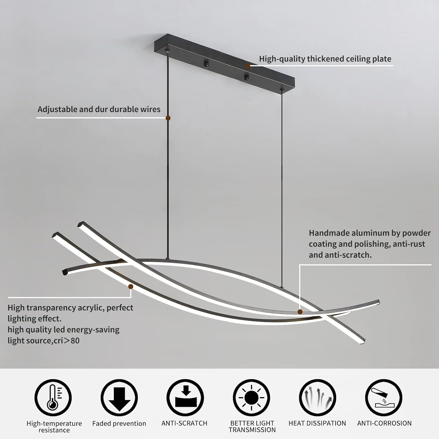 - LED Light Source : - The ceiling dining room light consists of 2853 high quality lamp beads, high brightness, anti-flicker, eye protection, energy saving and environmental protection, average service life of 50,000 hours, no UV and IR radiation, eye protection. Comfortable to use.