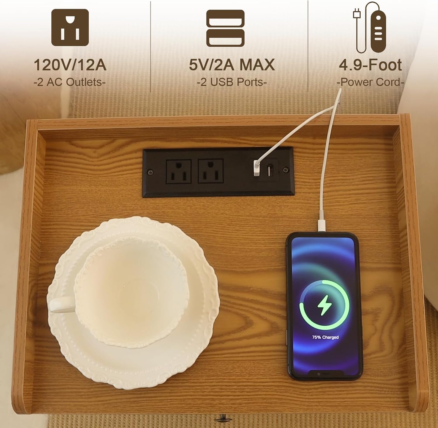 - Multifunctional Nightstand: This mid century modern nightstand with the charging station is equipped with 2 USB Ports and 2Γ3-Prong Power Outlets that can meet your needs to charge phones, iPads, laptops, and desk lamps easily. The 4.9-foot-long electrical cord makes phones, and ipads when charging that also is within your armβs reach