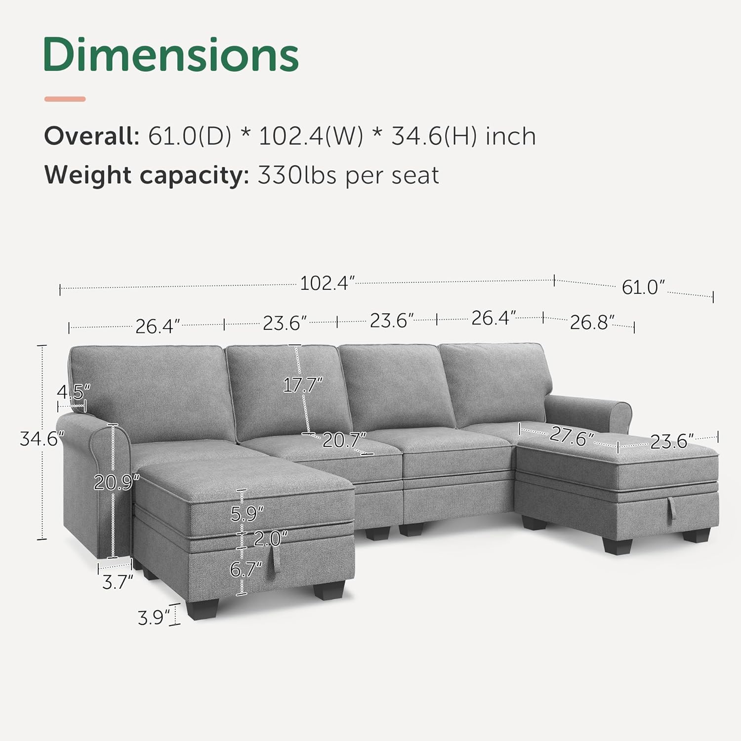 HONBAY Convertible Sectional Sofa with Storage Seat 6 Seat Sofa with Reversible Chaise U Shaped Sectional Couch for Living Room,Light Grey